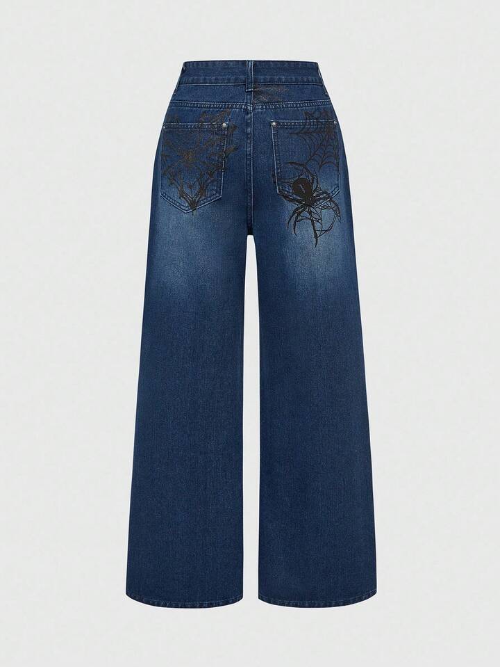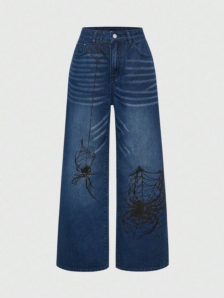 Grunge Punk Damen Halloween Spinnennetz Weite Bein Jeans