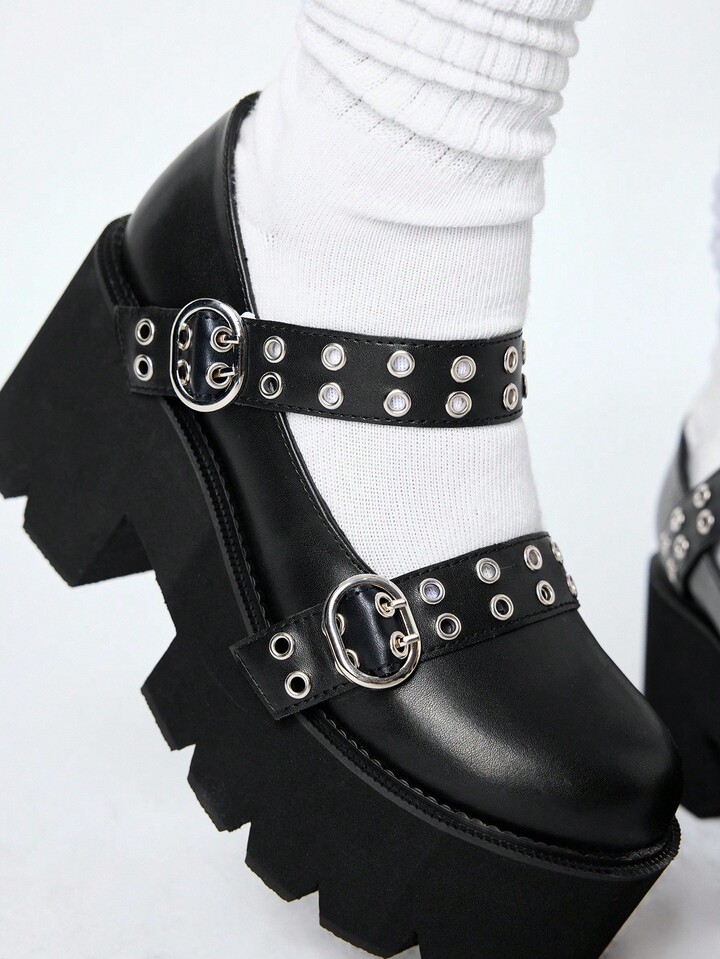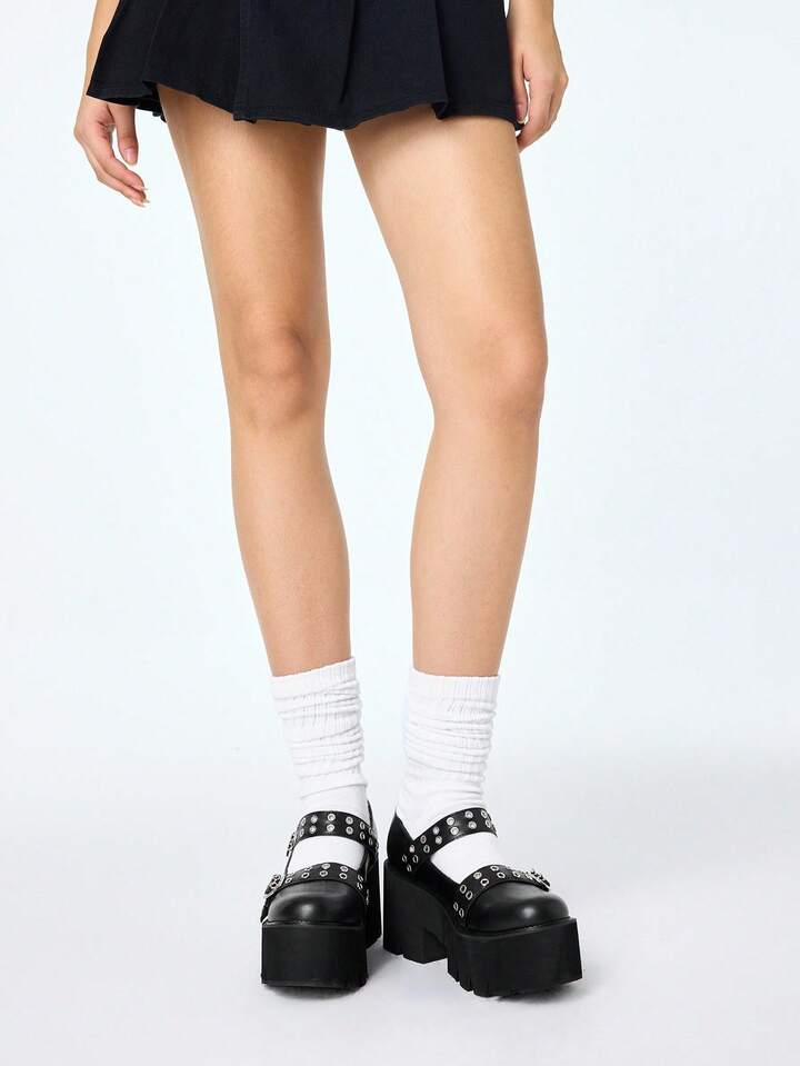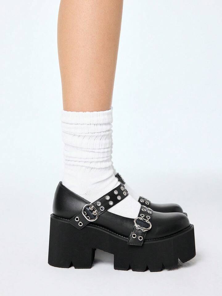 Grunge Punk Damen neue Plateau-Keilabsatz-Loafers mit runder Zehenpartie