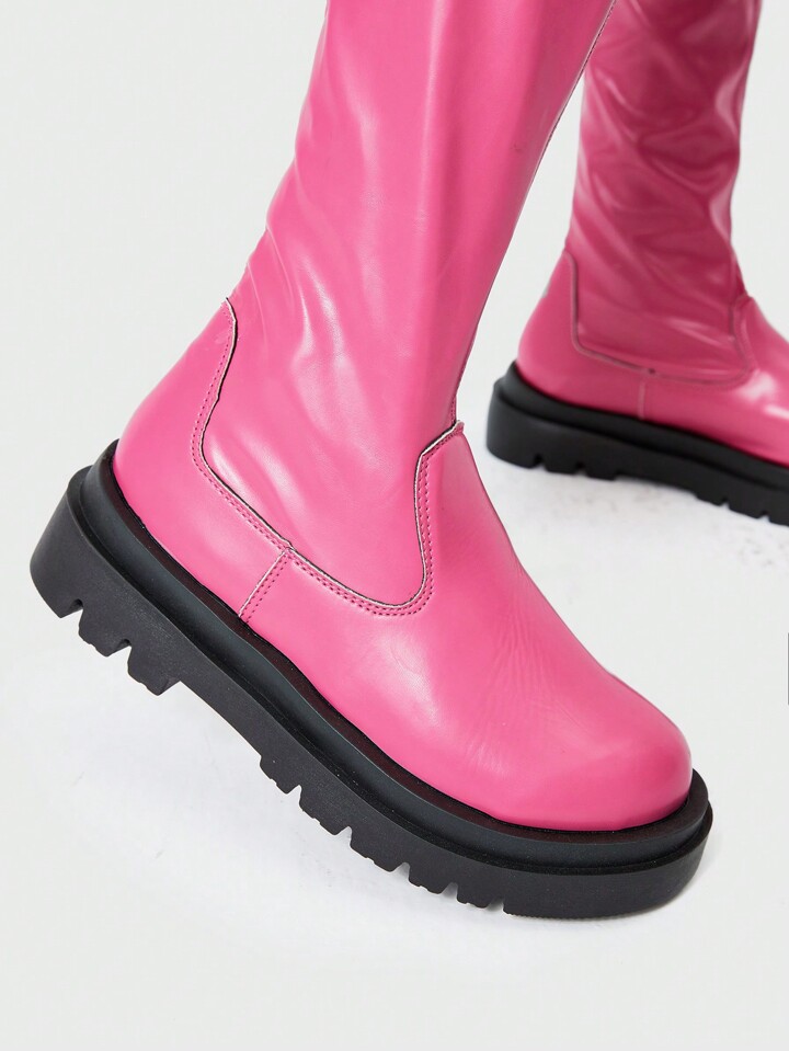Grunge Punk Damen Patent Leder Plateau Punk Rock Overknee Stiefel, Pink, Täglicher Lässig Punk Street Style für Weihnachten und Silvester, Herbst und Winter