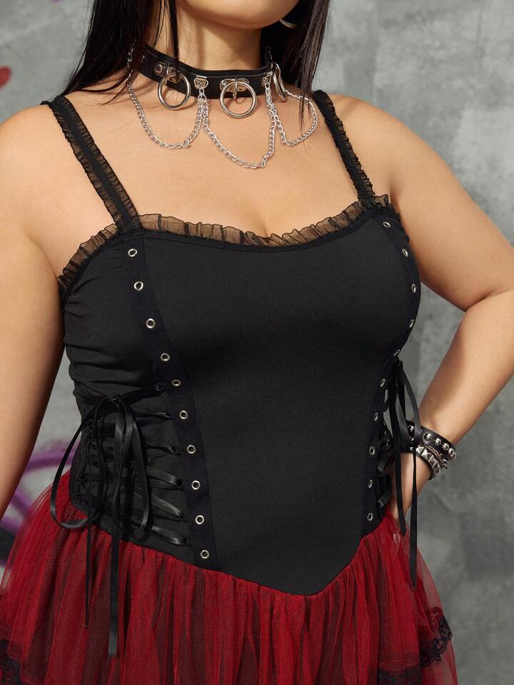 Grunge Punk Ärmelloses Kleid In Übergröße Für Damen Mit Mesh-saum