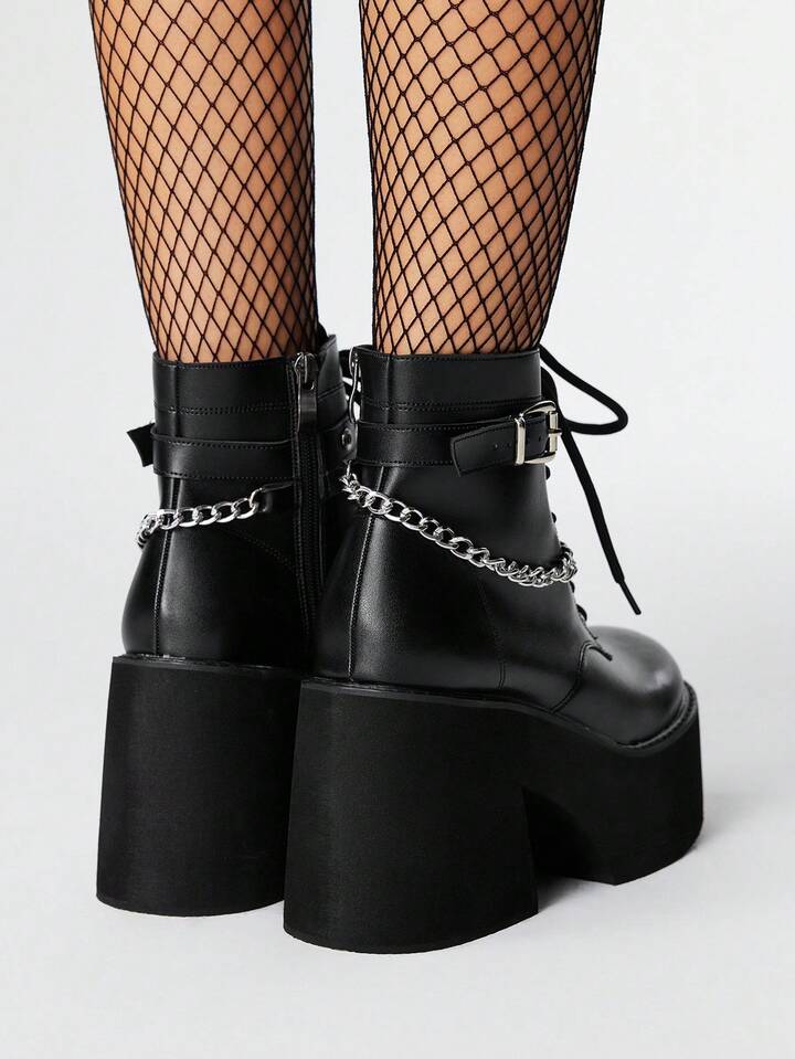 Grunge Punk Damen Punk Stil Plateau Absatz Schwarze Knöchel Stiefel