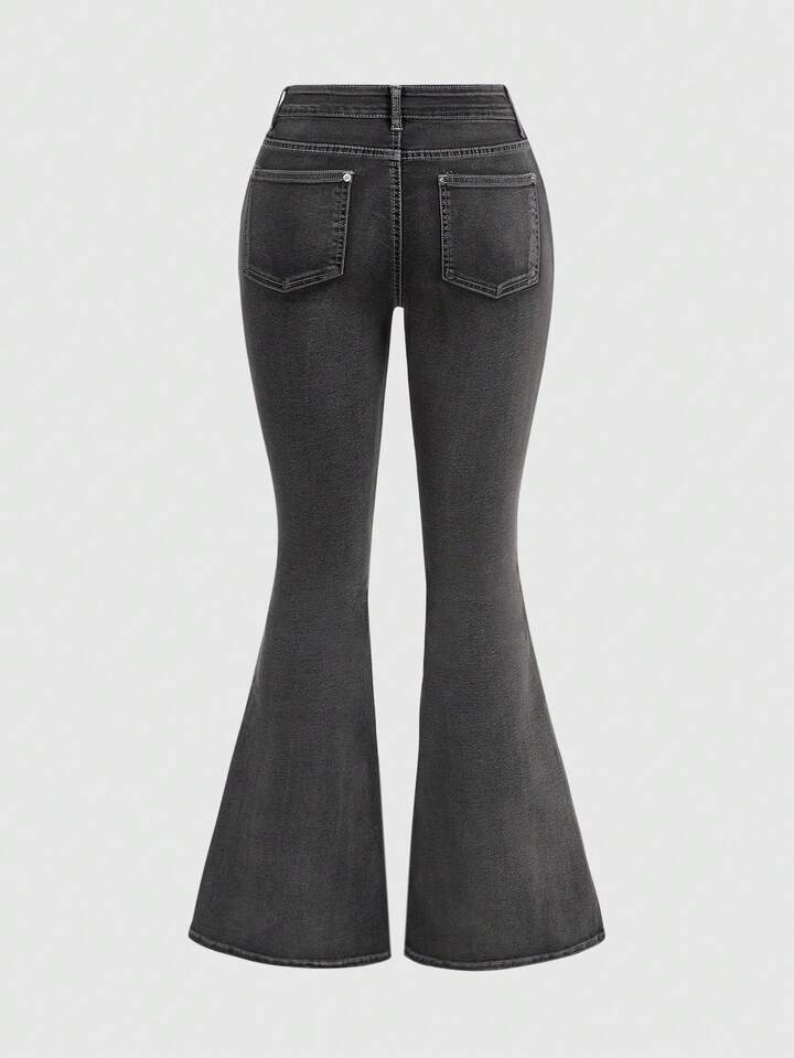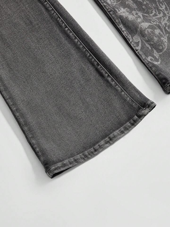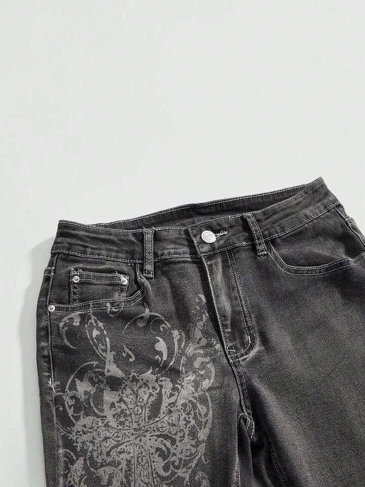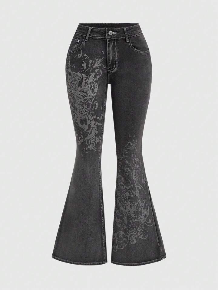 Grunge Punk Damen Retro Grunge Vintage Kreuz- und Rankenmuster Tief Taillierte Sexy Schlagjeans