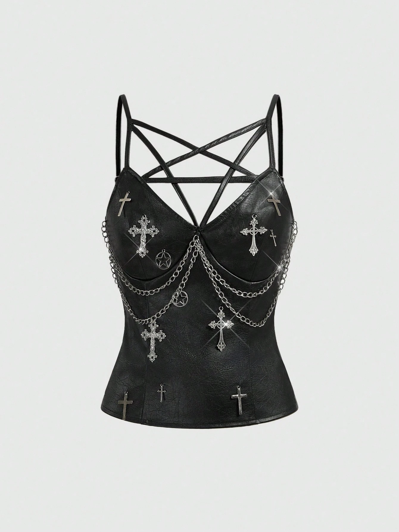 Grunge Punk Damen Retro Motorrad Punk Street Fünfzackiger Stern Schnürung PU Stoff Kreuz Dekor Trägertop