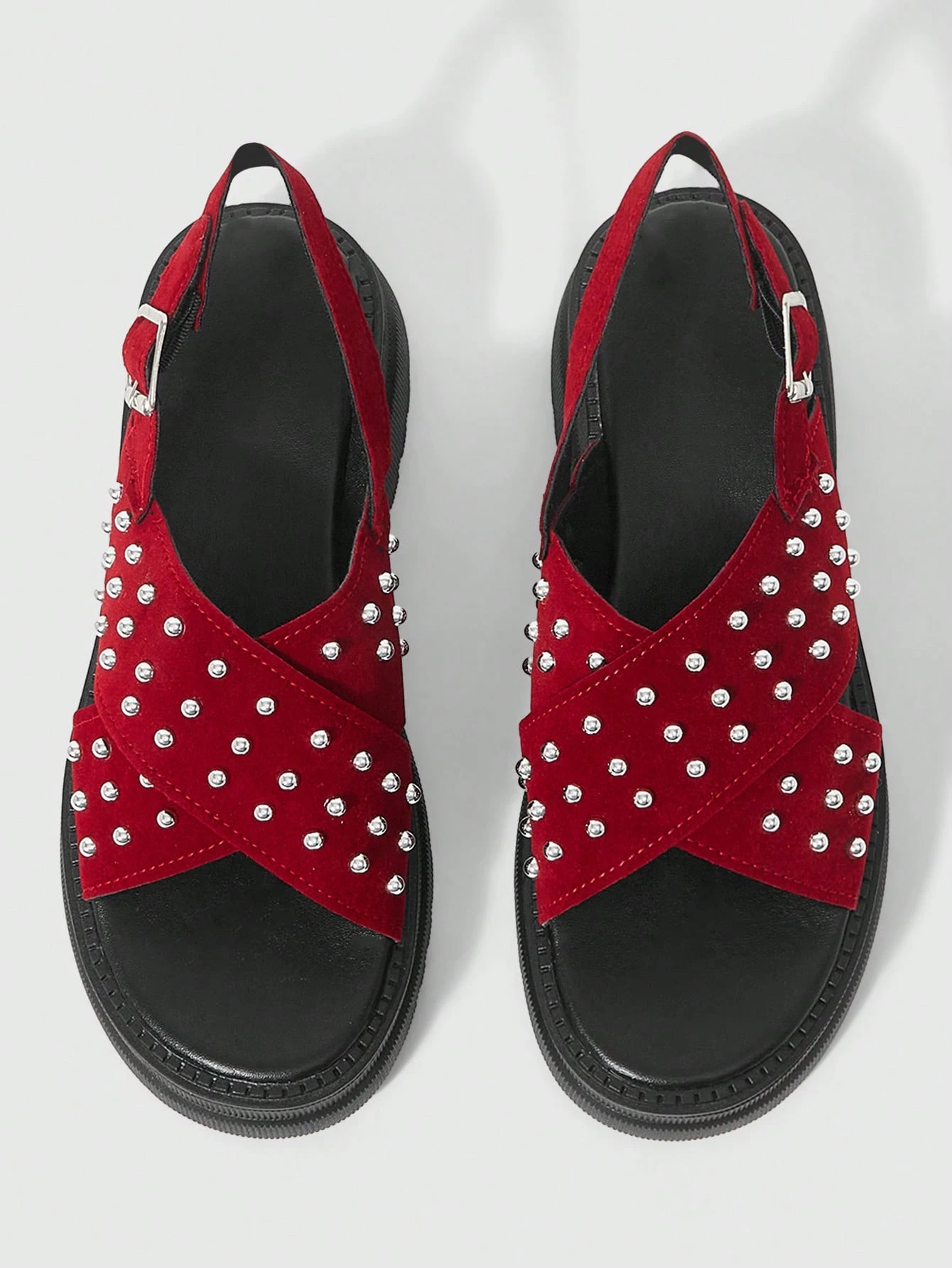Grunge Punk Damen Silber Kreuz-Riemen Römersandalen, Punk Nieten Plateau Keilabsatz Sommer Strandurlaub Schuhe