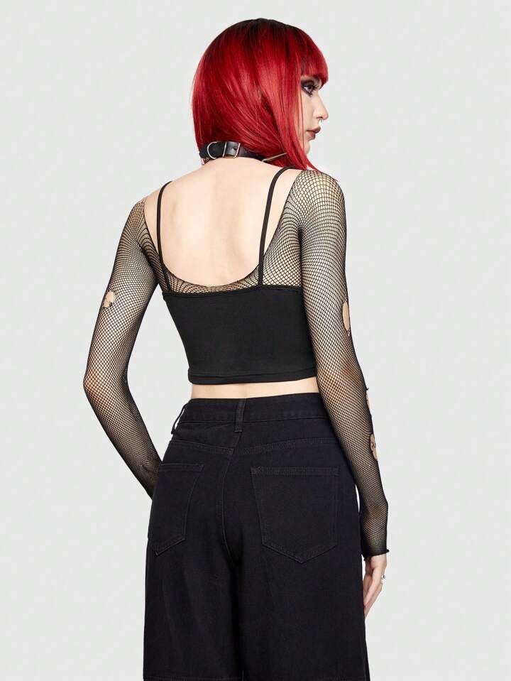 Grunge Punk Frauen Totenkopf & Hand Druck Camisole Top