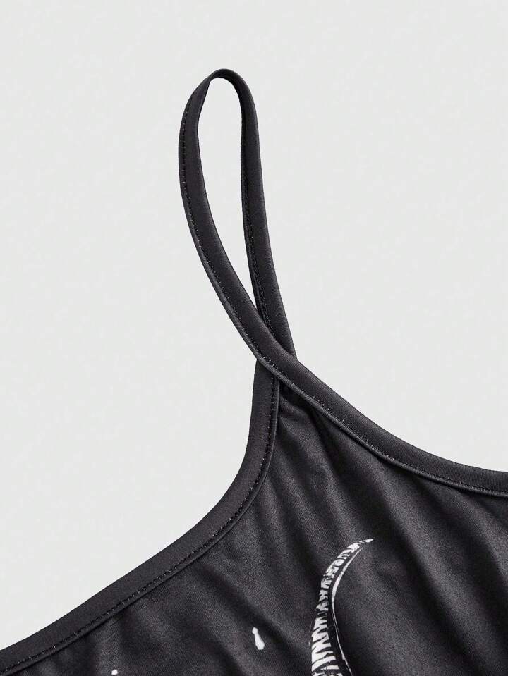 Grunge Punk Spaghettiträger-kleid Für Damen Mit Totenkopf- Und Horn-druck
