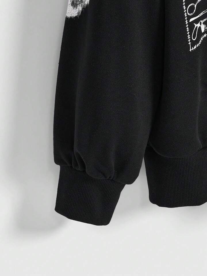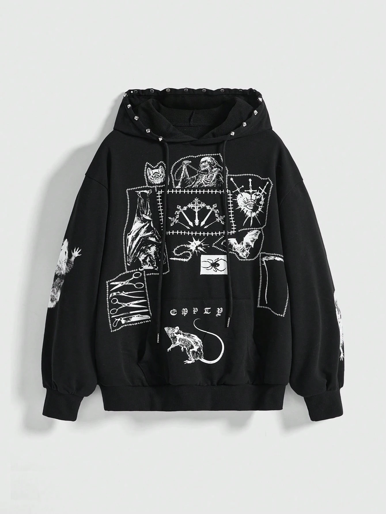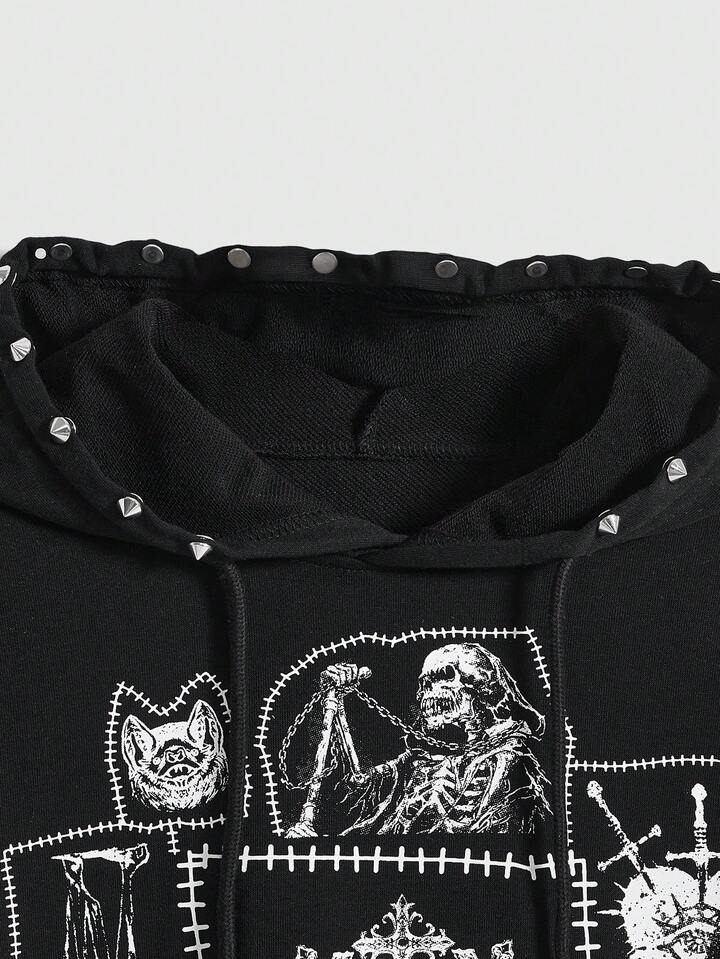 Grunge Punk Damen Skull Muster Kapuzen Lässig Mode Langarm Sweatshirt