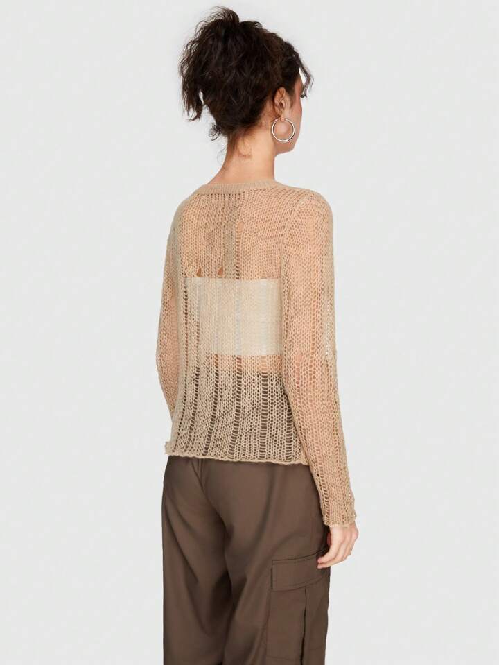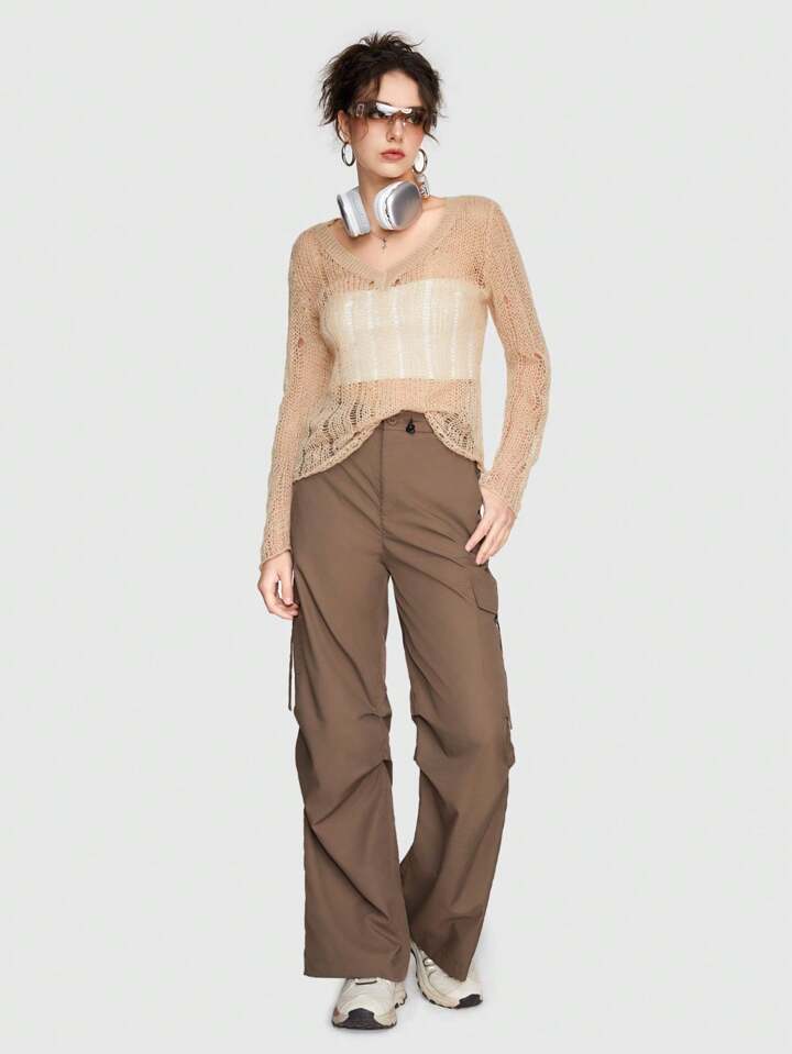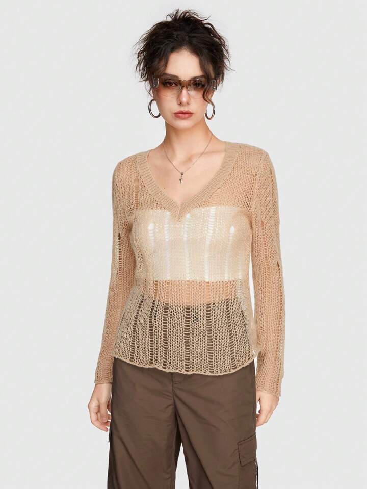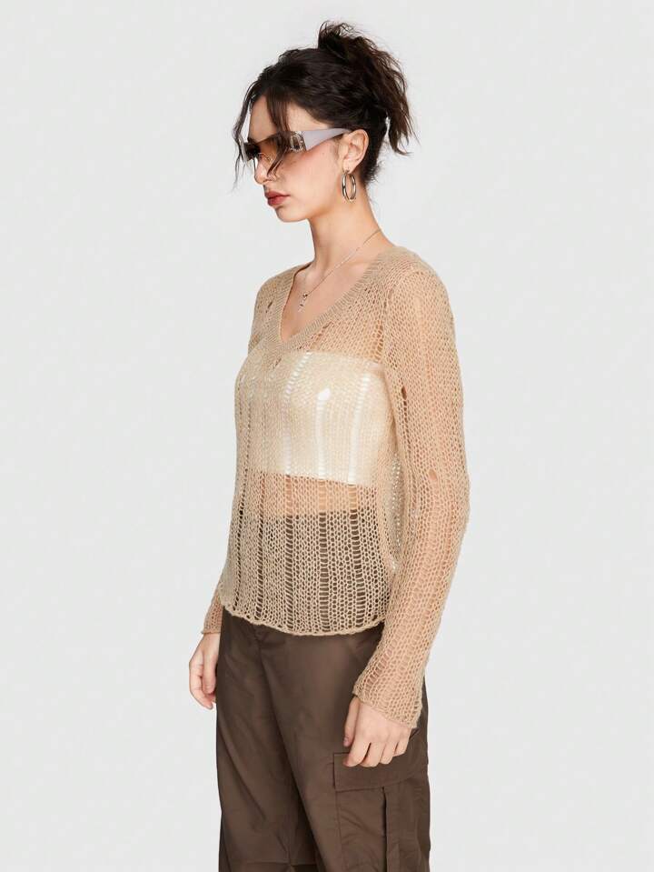 Grunge Punk Frauen V-ausschnitt Ausschnitt Hohl Engen Pullover