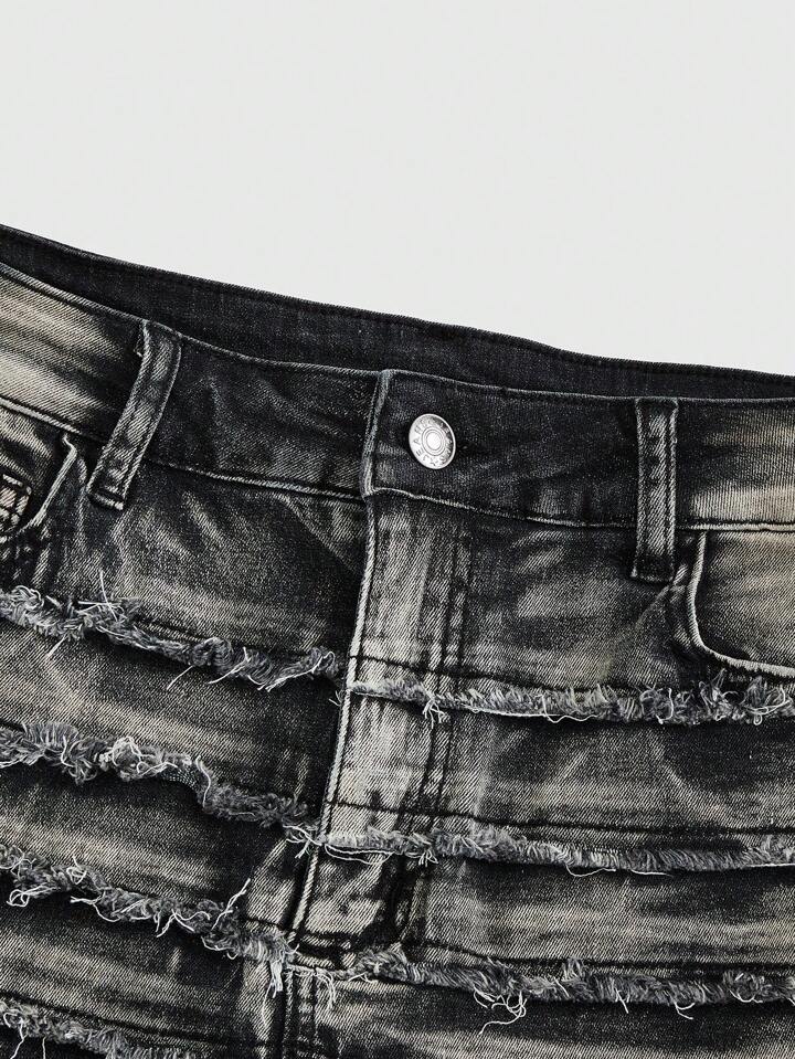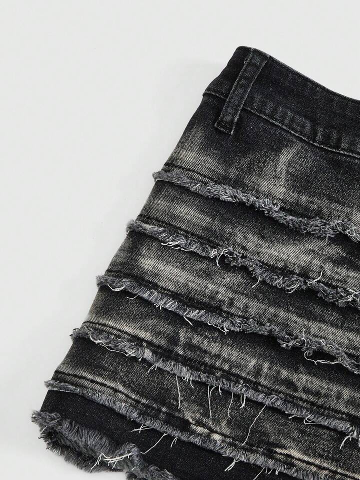 Grunge Punk Y2K zerrissener mehrschichtiger ausgefranseter Saum Jeans Minirock mit niedriger Taille (inklusive elastischen Leggings)