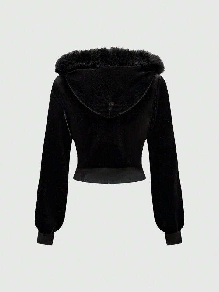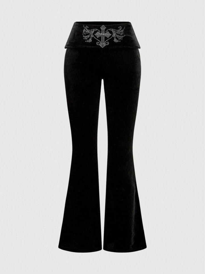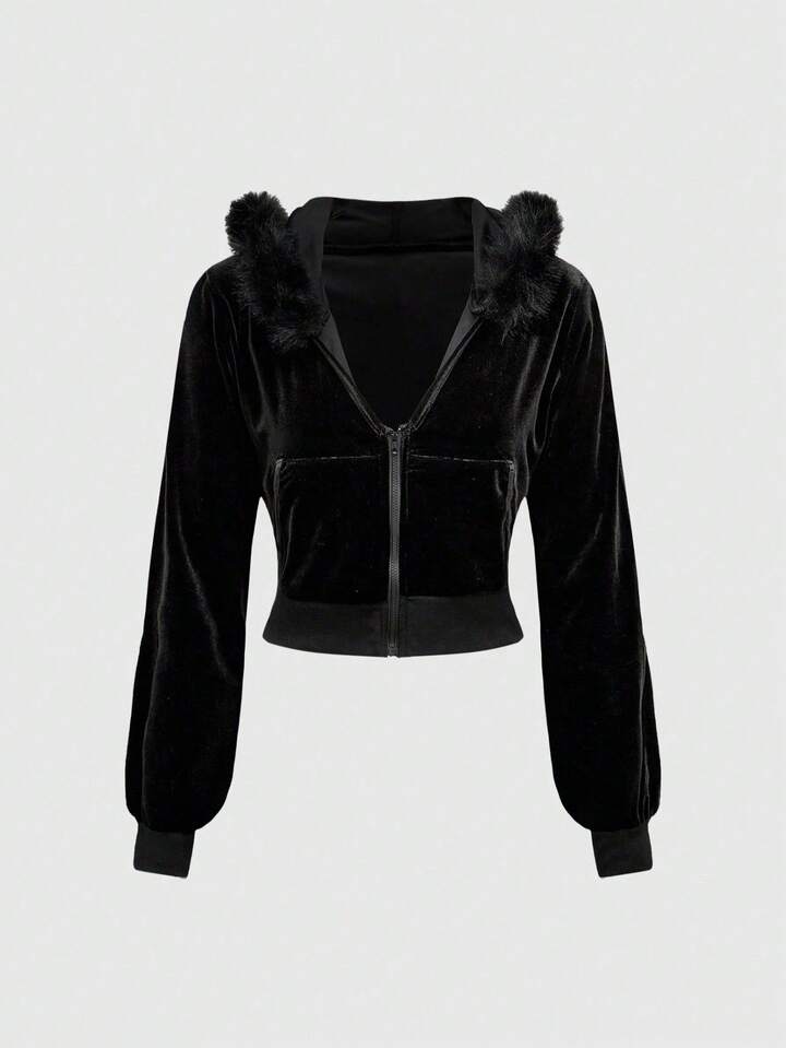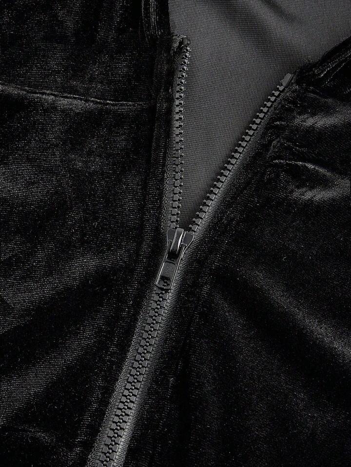 Grunge Punk Y2K Gyaru Baddie Set aus Samt Crop Hoodie und Schlaghose mit niedriger Taille für Damen