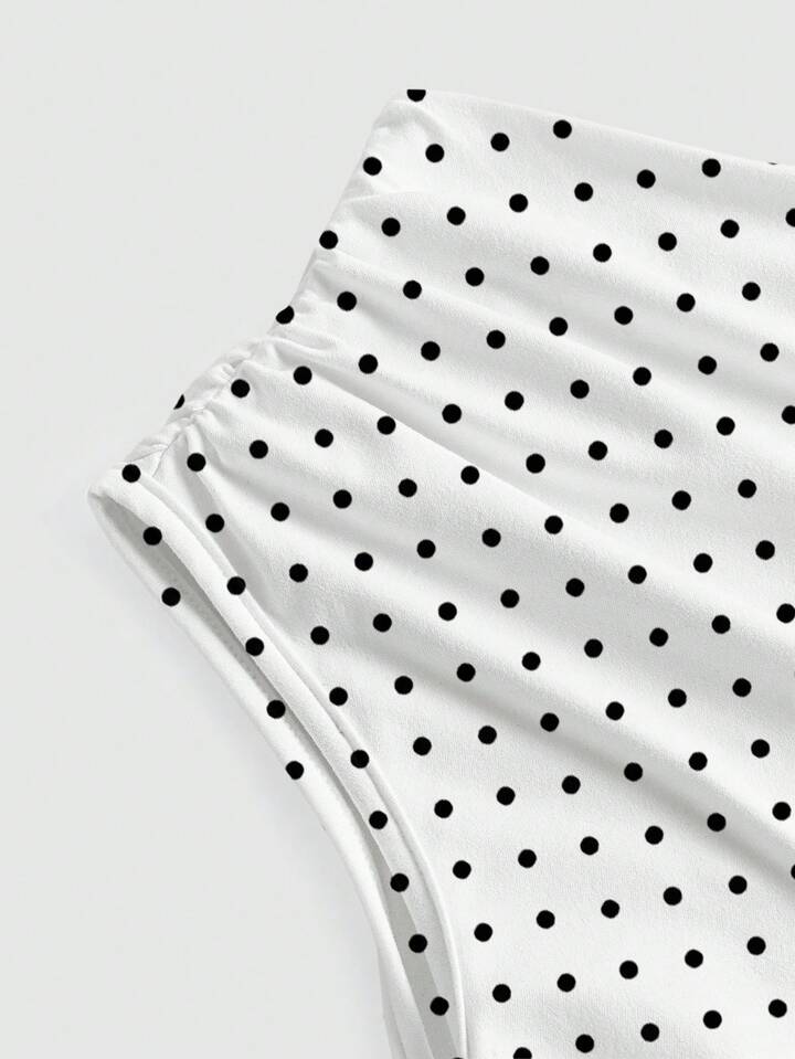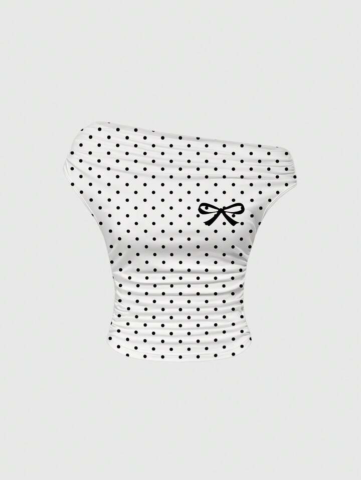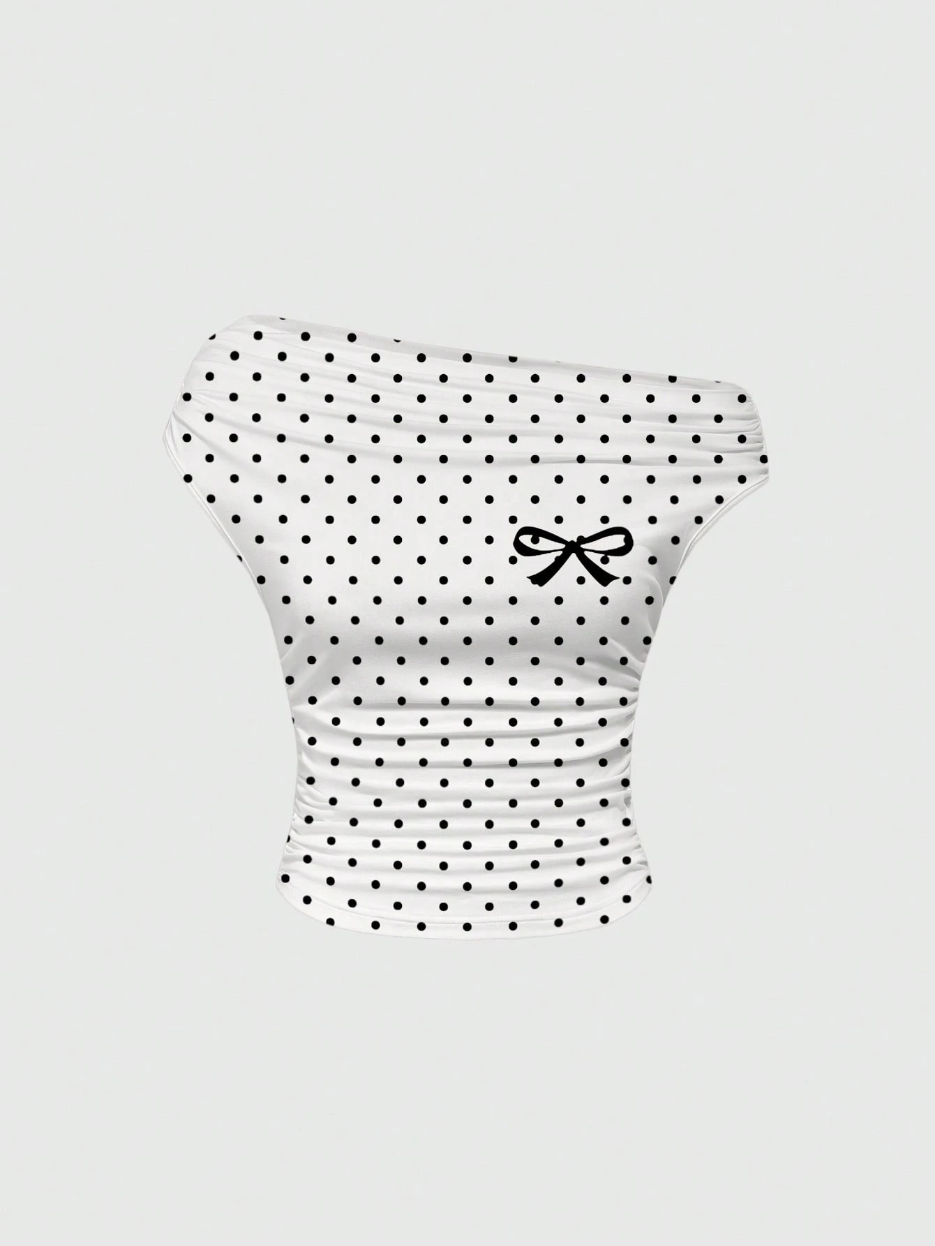 Grunge Punk Y2K Polka Dot Schleife Sexy asymmetrische Schulter Allover Muster Damen T-Shirt