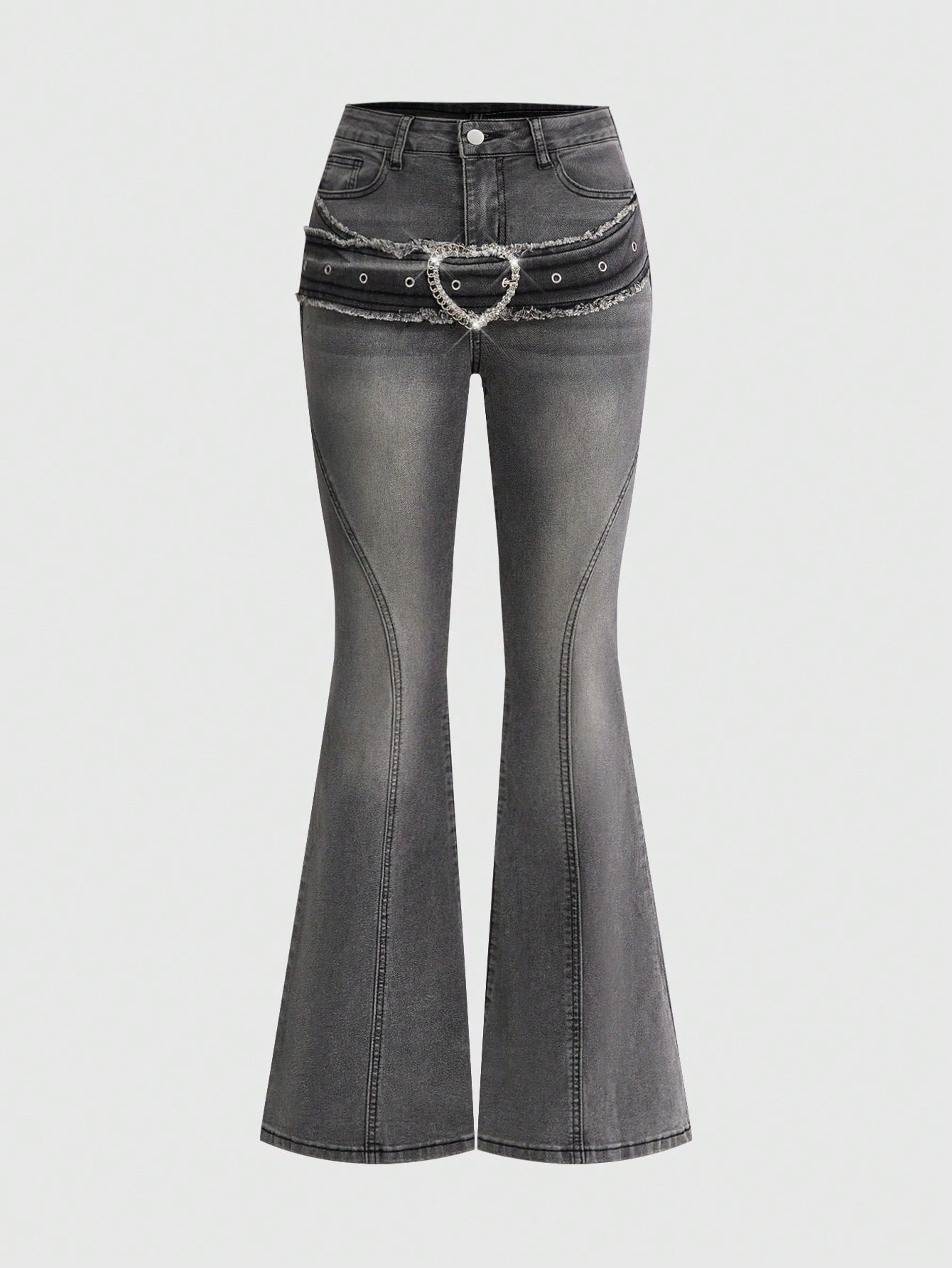 Grunge Punk Y2K Retro Herz Metall Schnalle ausgefranster Taillengürtel Skinny Schlagjeans für Frauen