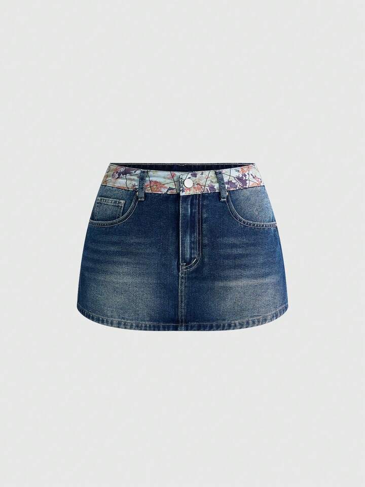 Grunge Punk Y2K Retro Millennium Babe Tasche Ukiyo-E Muster Stickerei Damen Bodycon Mini Rock (mit Leggings)