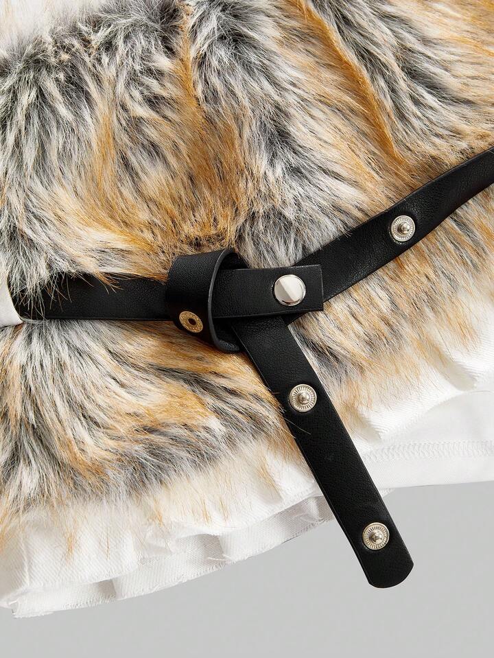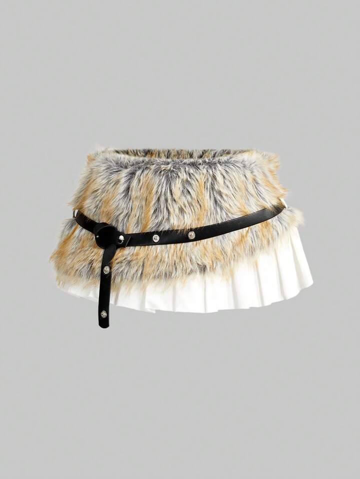 Grunge Punk Y2K Retro Patchwork Kunstfell Mini-Rock für Frauen, super taillennah