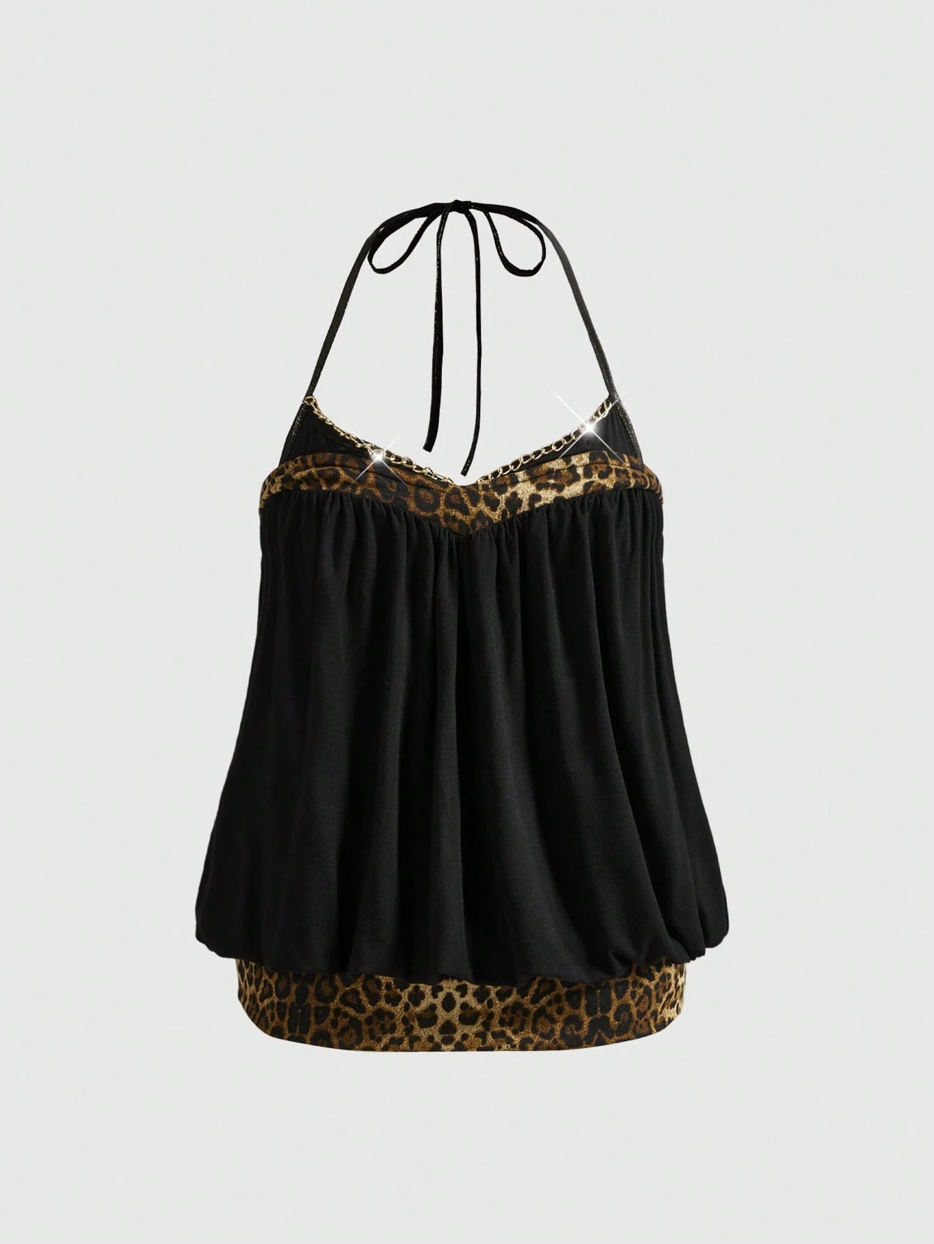 Grunge Punk Y2K sexy Leoparden-Muster Patchwork Metallkette drapierte Rückenfreie Camisole