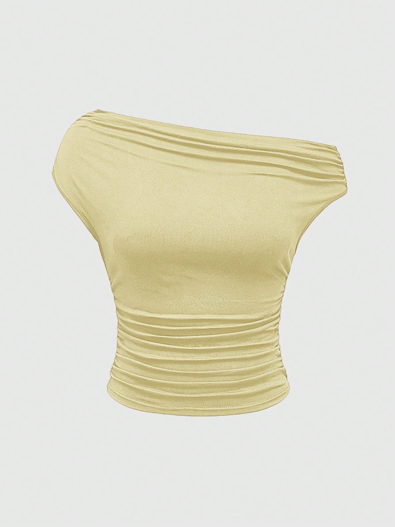 Grunge Punk Y2K Shibuya Girl Millennials Retro wiederbelebtes eng geschultertes gerafftes Damen T-Shirt
