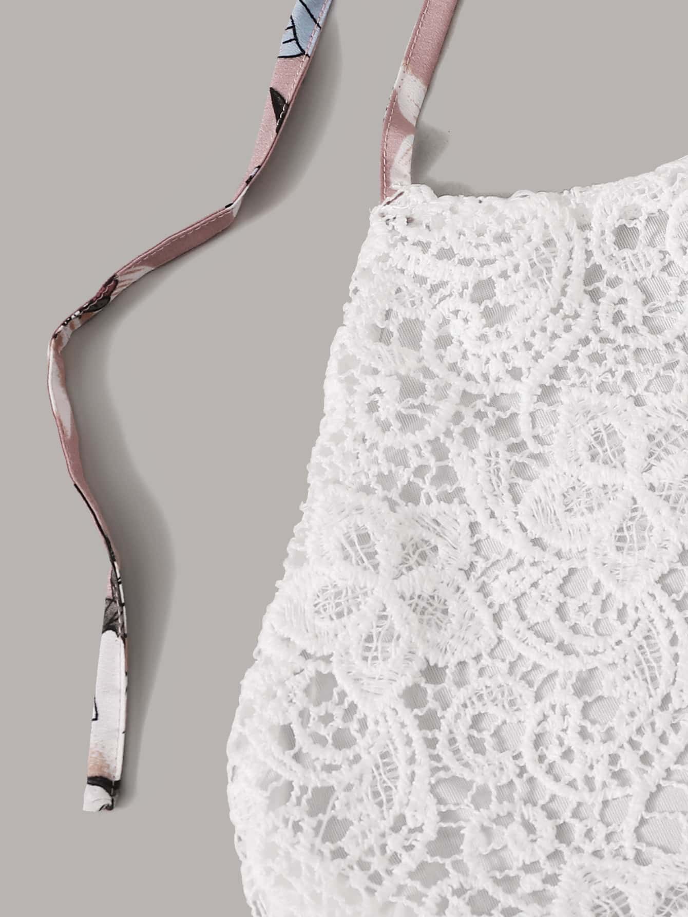 Top mit Guipure Spitze, Band hinten, Neckholder & Shorts mit Blumen Muster