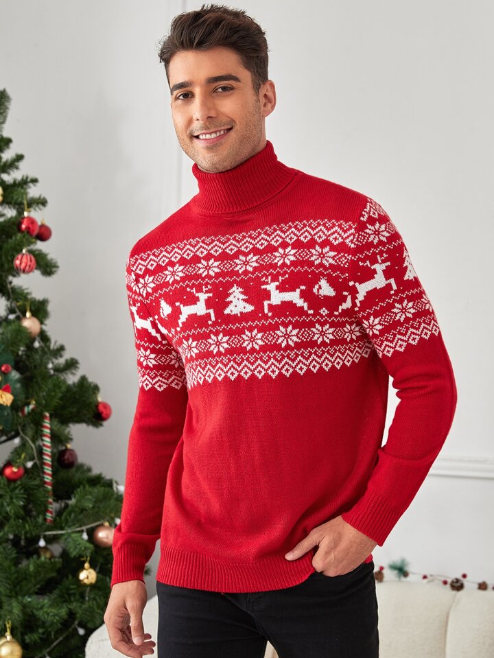 Männer 1 Stück Pullover mit Weihnachten Muster, Rollkragen