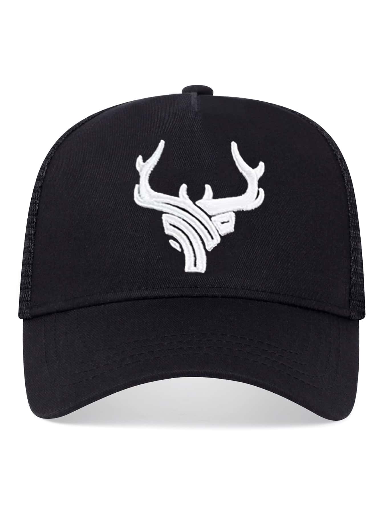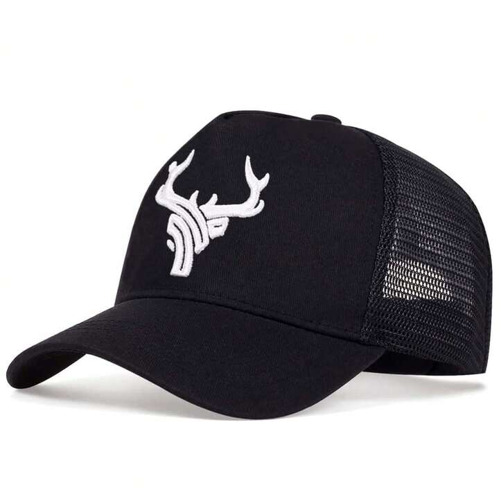 1 Stück Baseball-mesh-cap Mit Hirschhorn-stickerei Für Herren, Verstellbarer Sonnenschutz Für Den Außenbereich, Freizeithut Für Frühling/sommer, Reisen Und Strandpartys