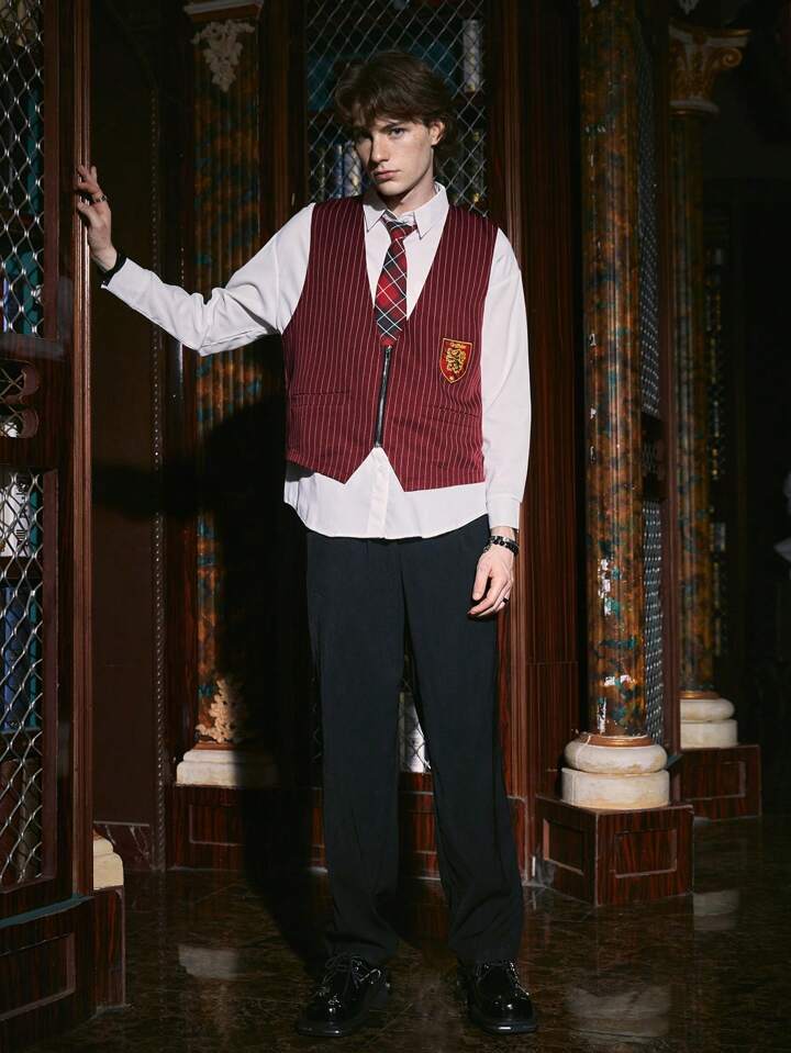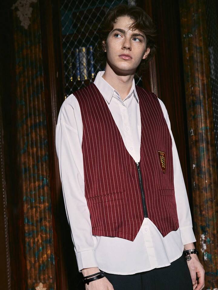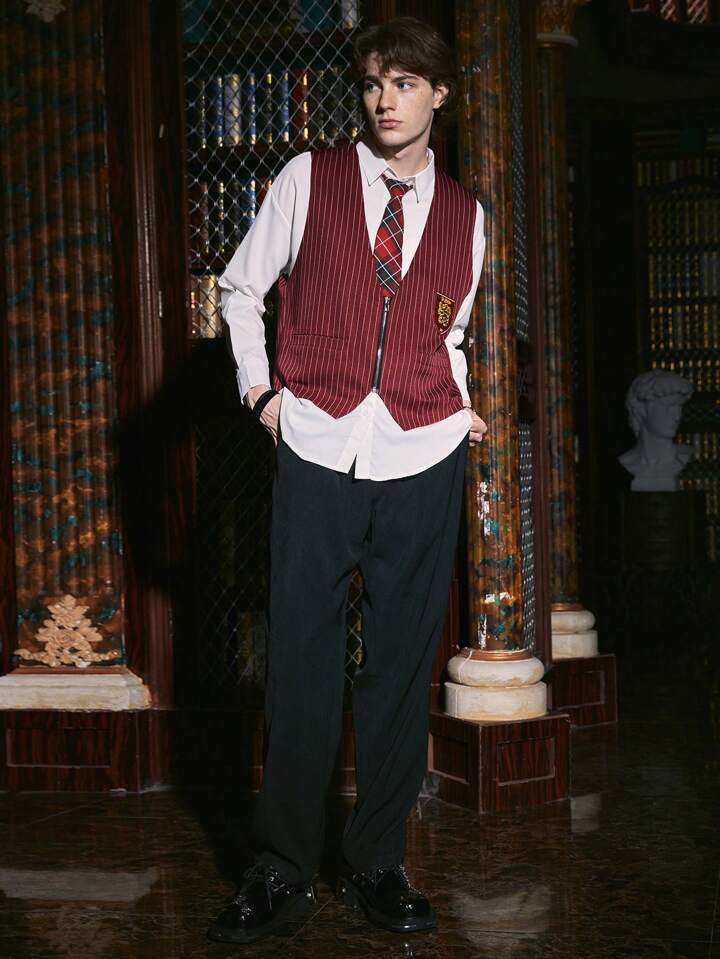 Harry Potter | ROMWE Männer Weste-Jacke mit Abzeichen, Streifen Muster, Reißverschluss,