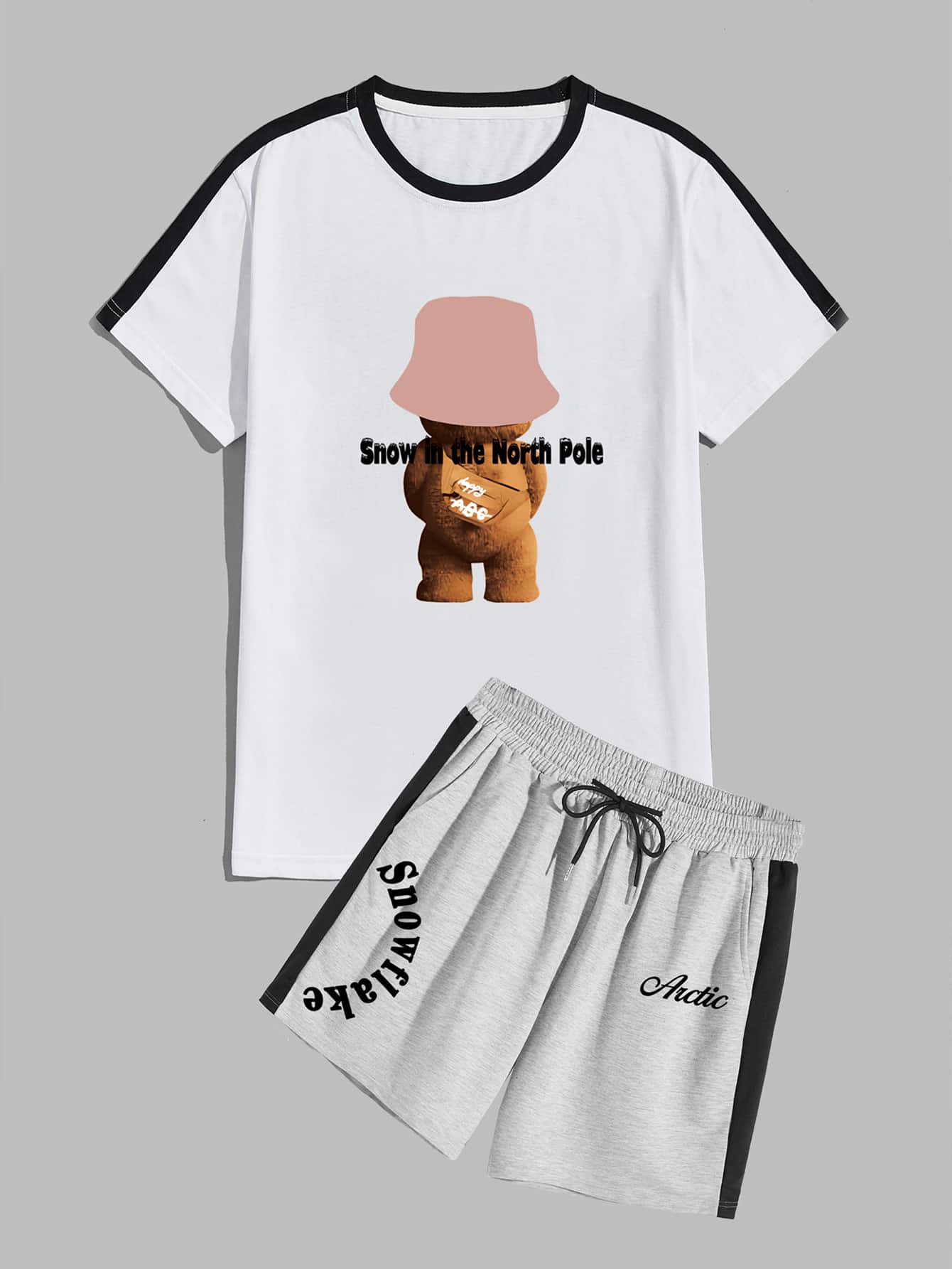 Männer T-Shirt mit Bär Muster, & Shorts mit Streifen