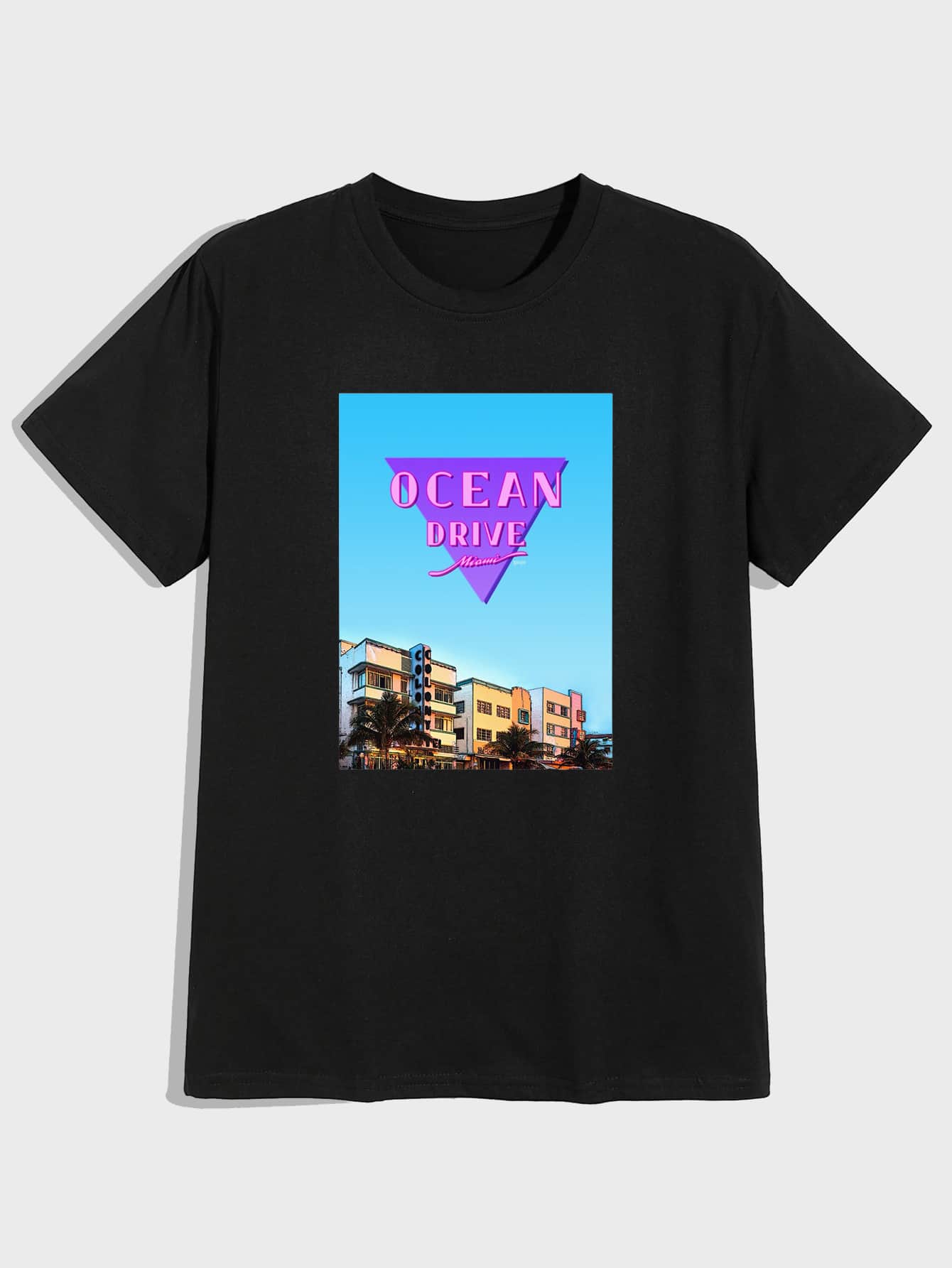 Männer T-Shirt mit Gebäude & Buchstaben Grafik