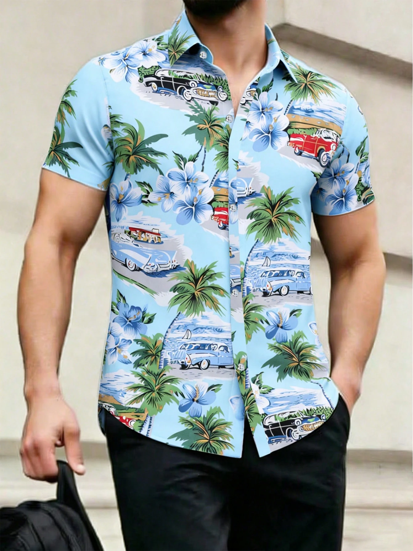 Männer Auto & Palmen Baum Druck Hemd Ohne T-shirt