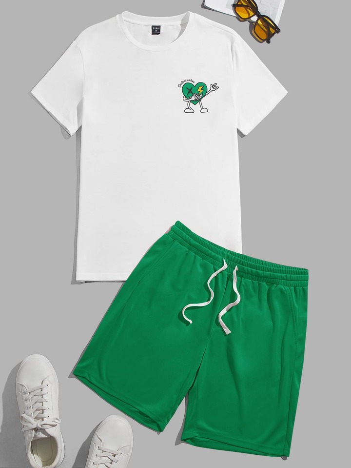 Männer Cartoon Grafik, T-Shirt mit & Tunnelzug, Shorts mit