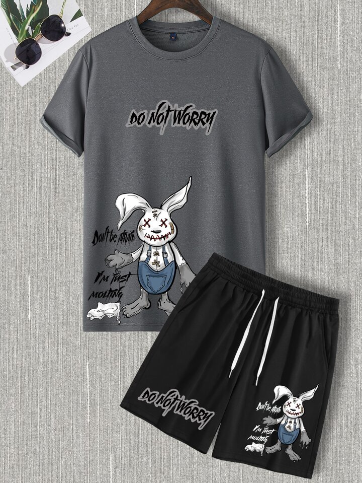 Männer Shorts & T-Shirt mit Cartoon & Buchstabe Grafik