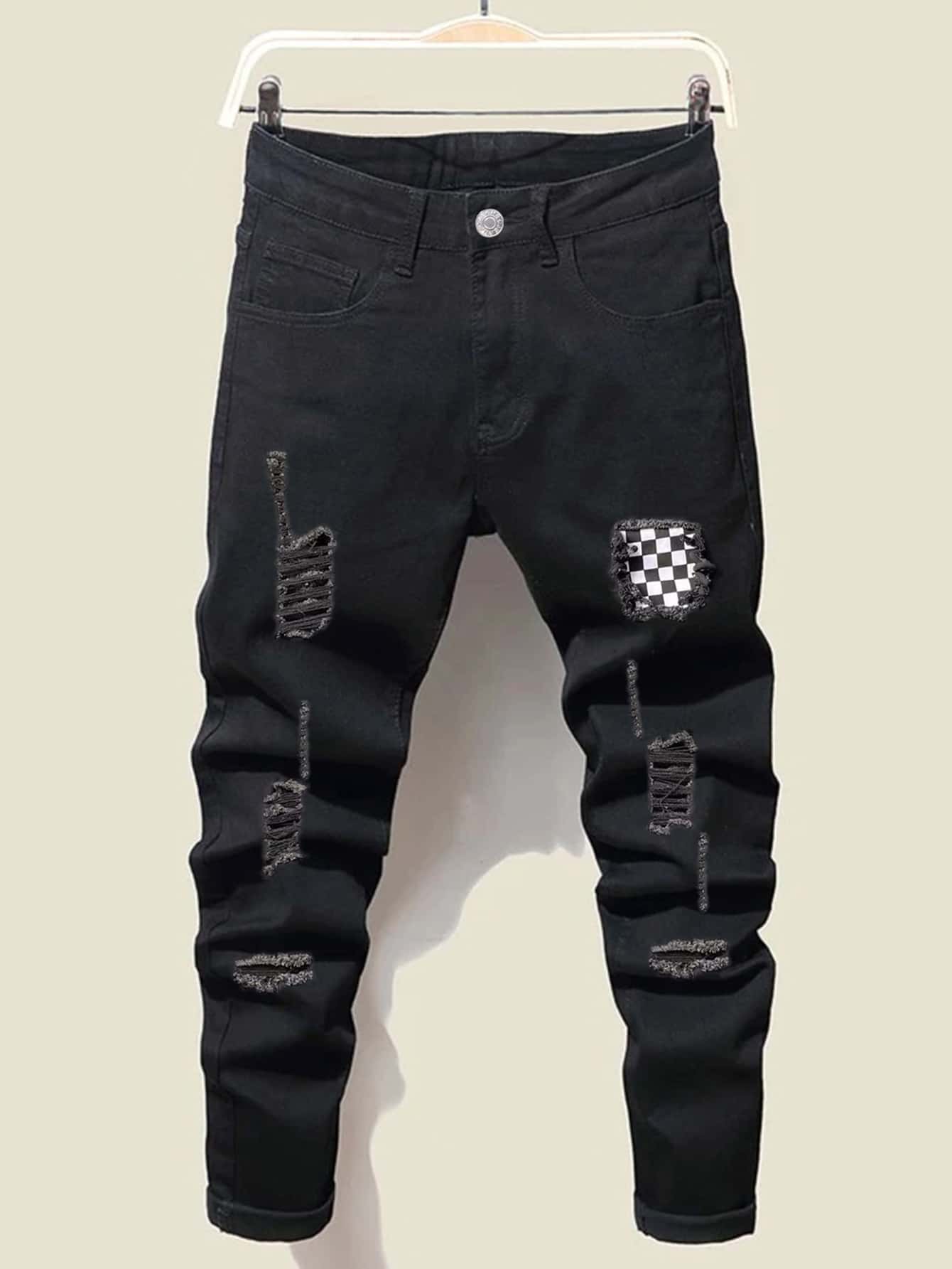 Männer Jeans mit Riss, Schachbrett