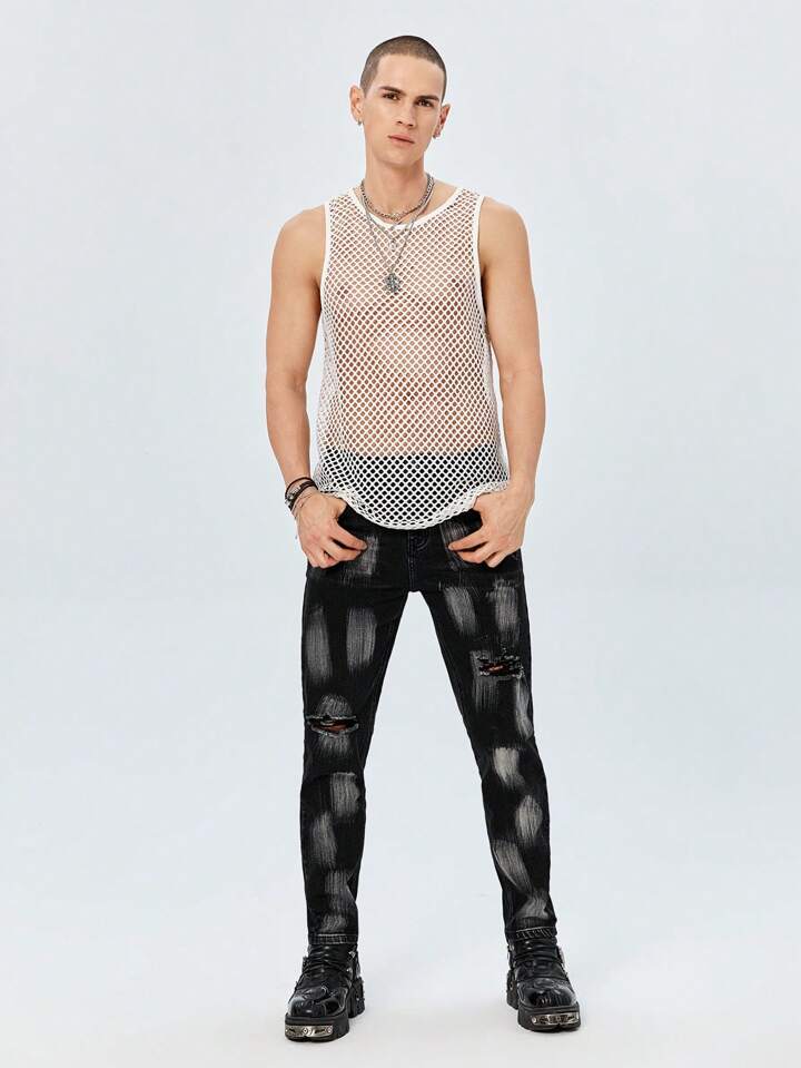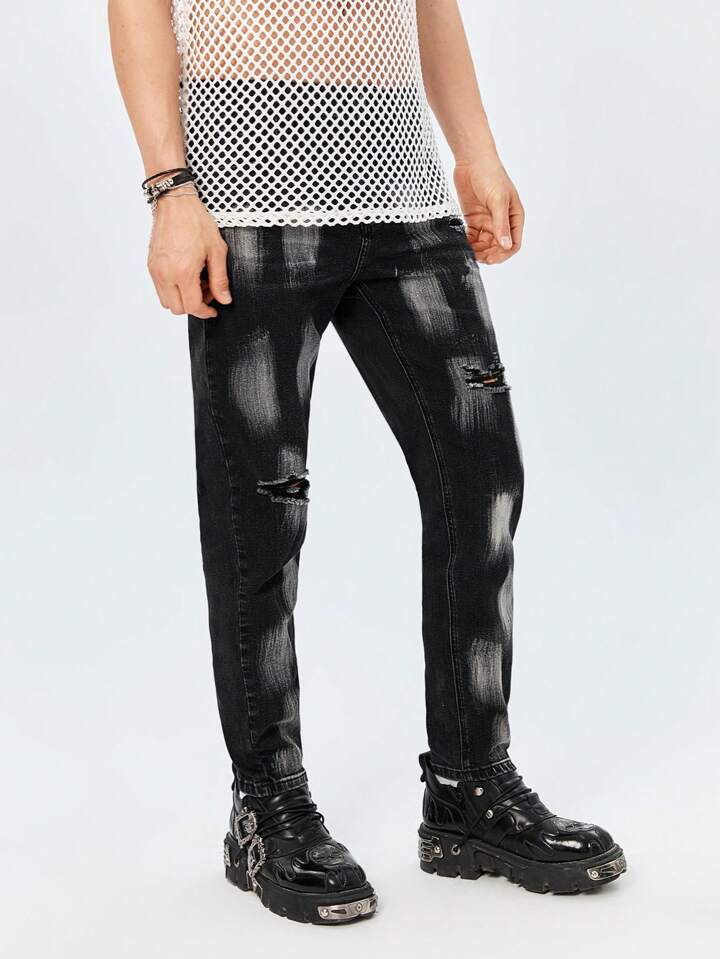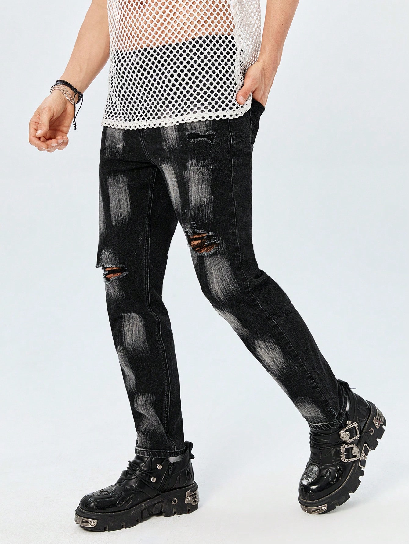 Zerrissene Jungen Baumwolle Skinny Jeans mit Pinselmuster