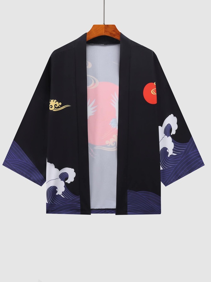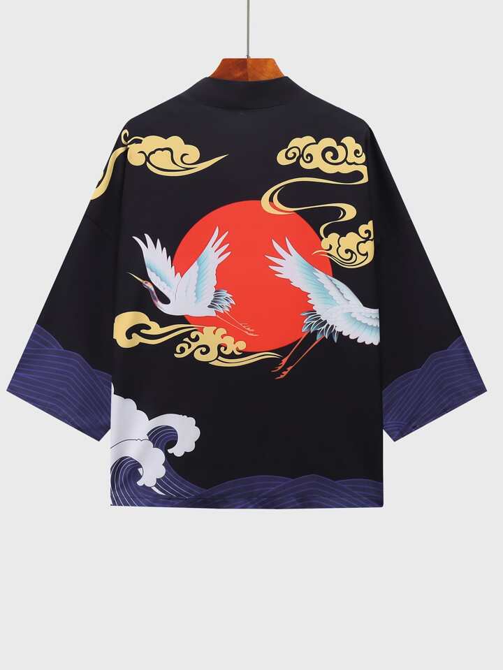 Kimono mit Kranich & Sonne Muster
