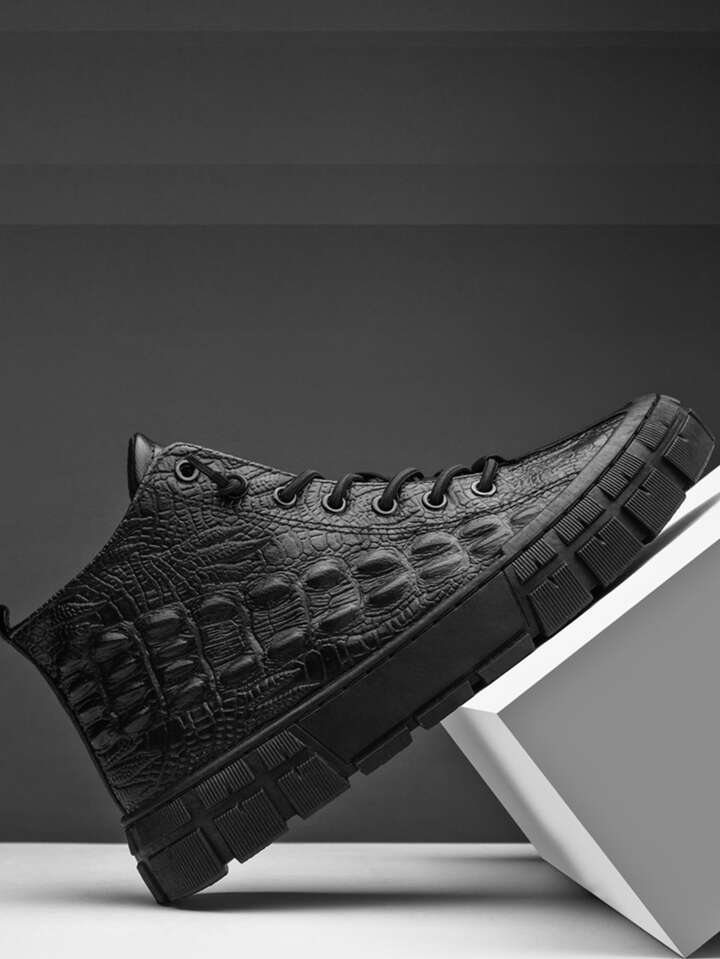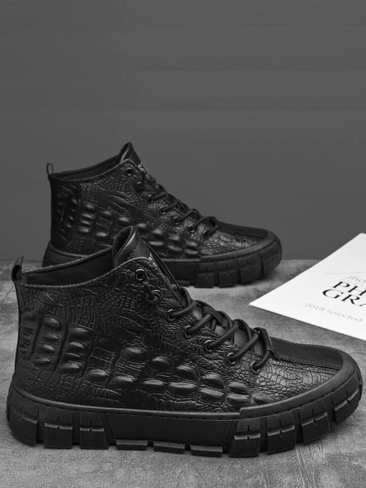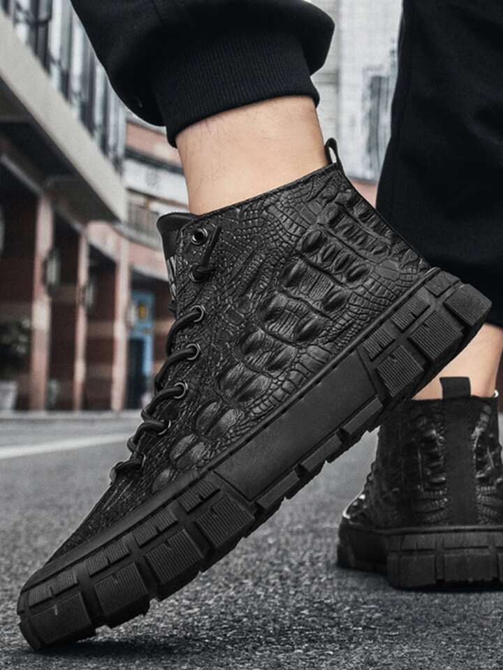 Männer Stiefel mit Krokodil Prägung, Band vorne
