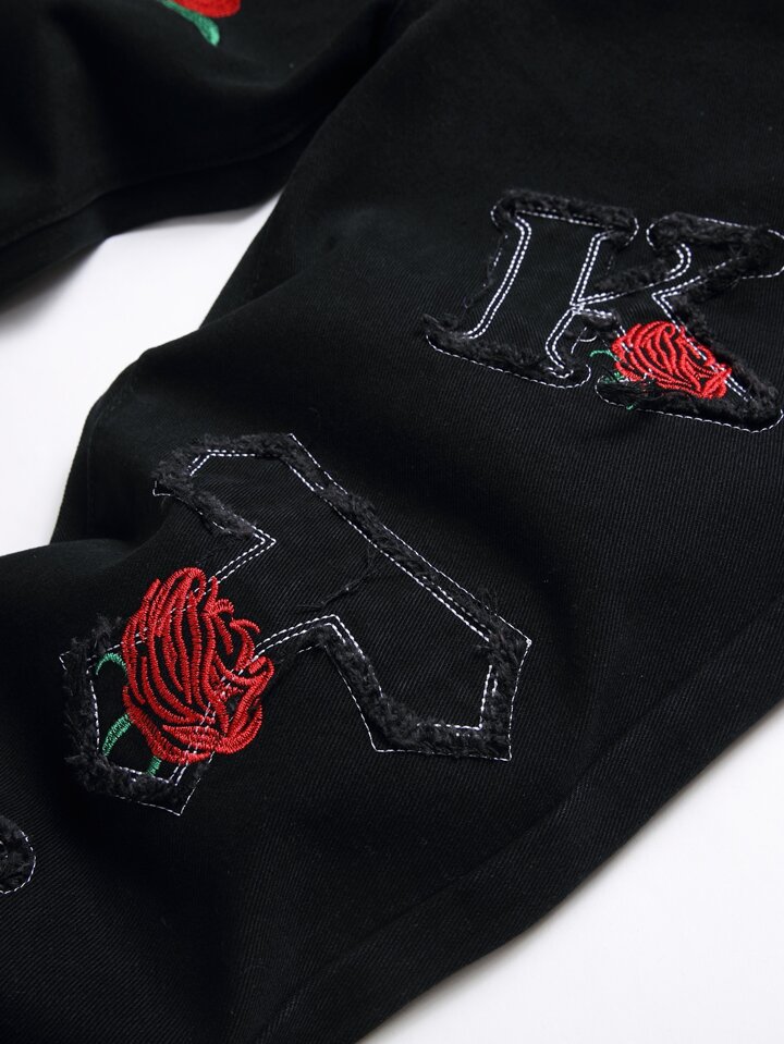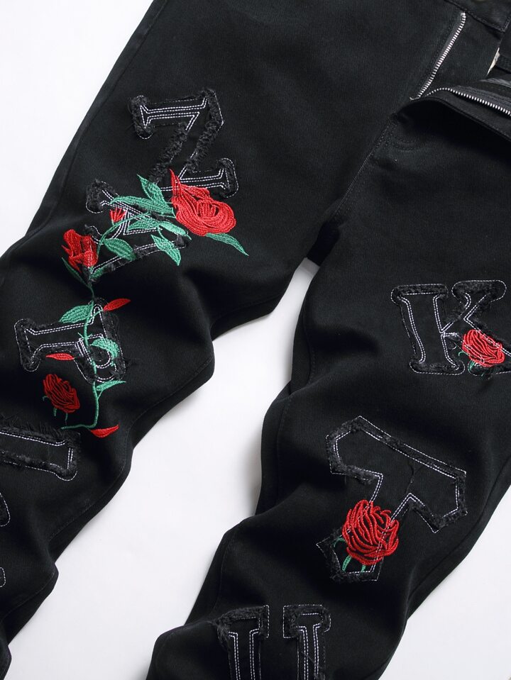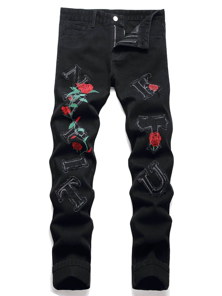Herren Jeans mit Stickerei Blumen- und Buchstaben Muster