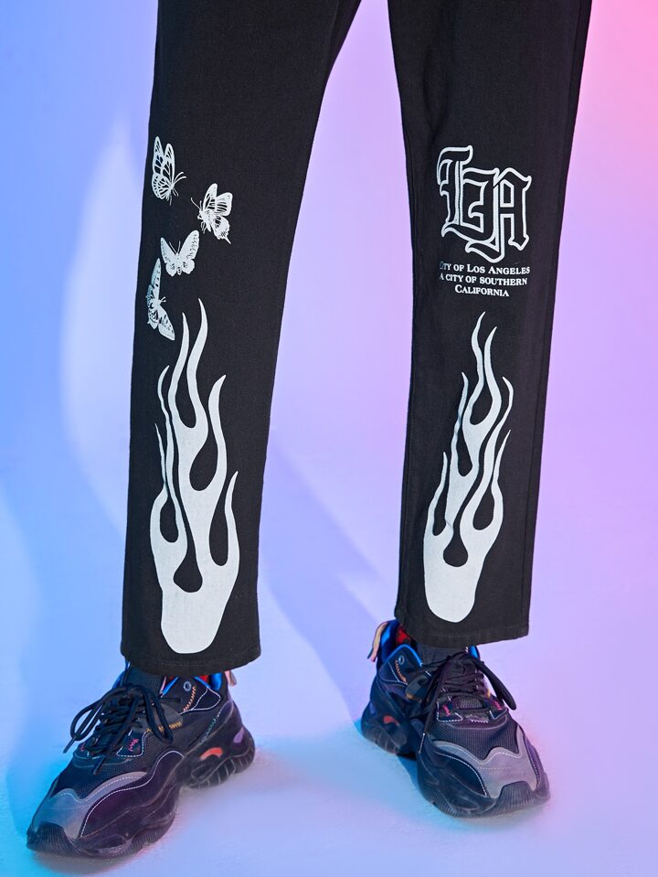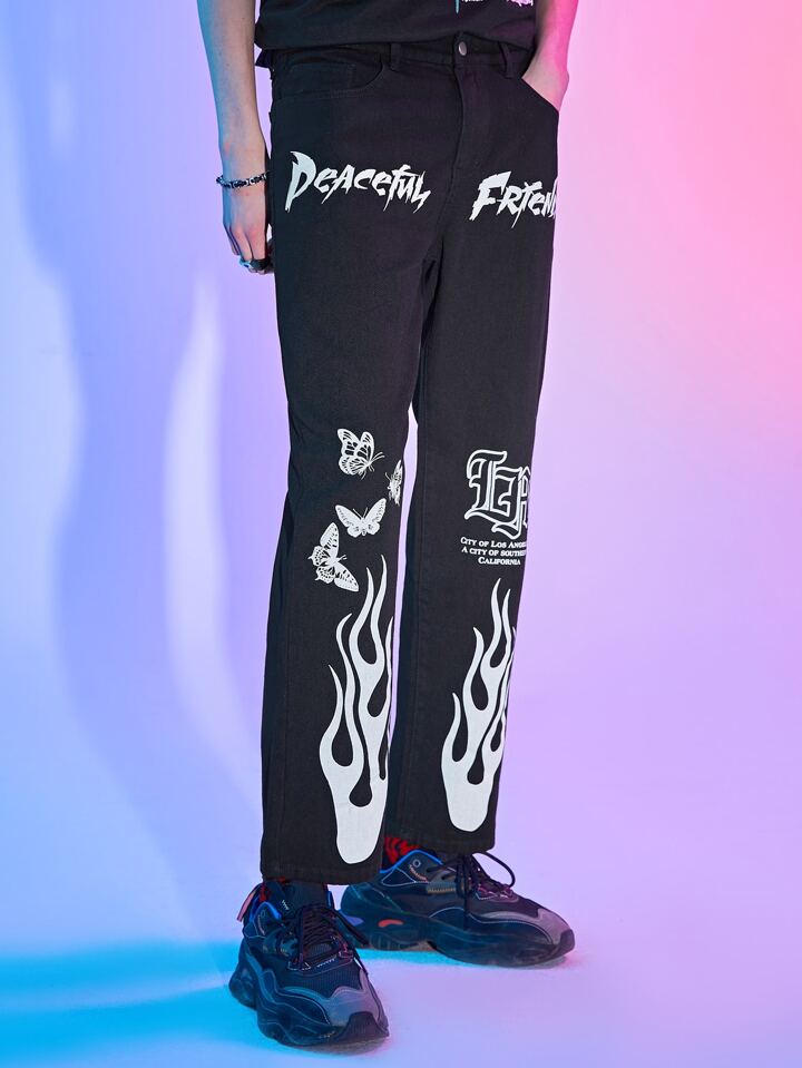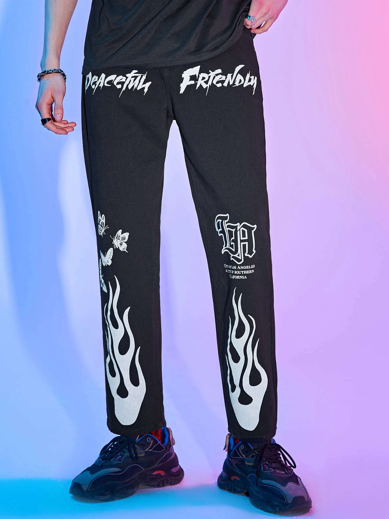 Männer Jeans mit geradem Beinschnitt, Feuer & Buchstabe Grafik