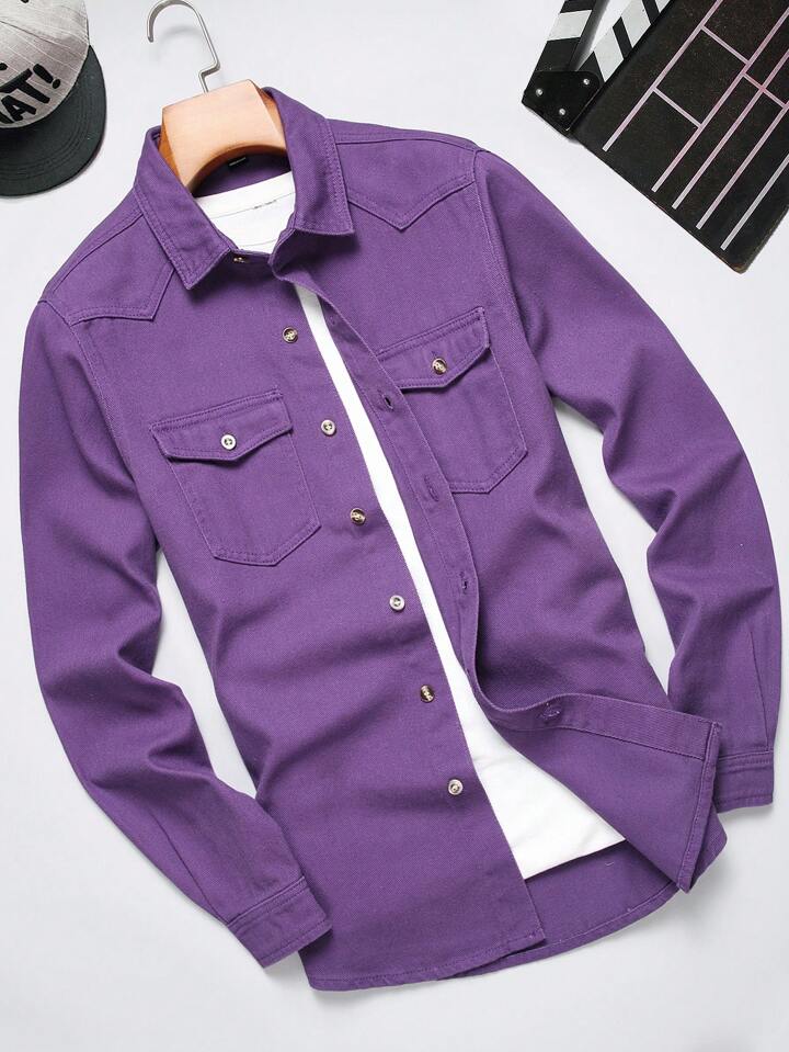 Herren Baumwolle Denim Hemd mit Pattentasche ohne T-Shirt