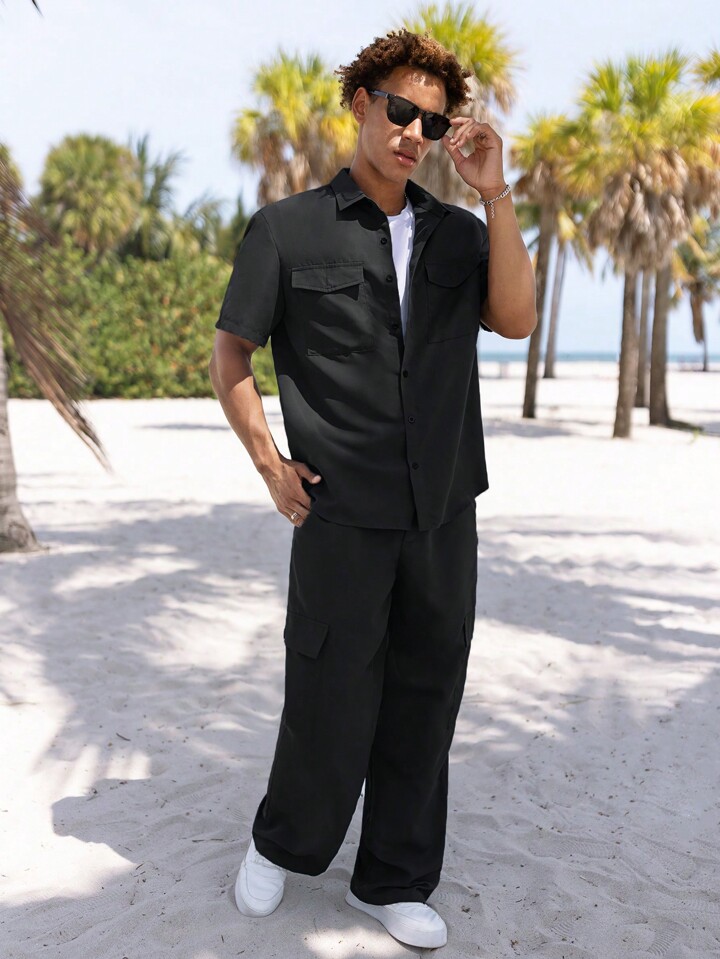 Lockeres Flap Pocket Herrenhemd & Hose