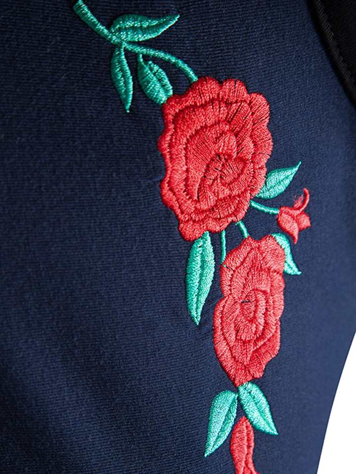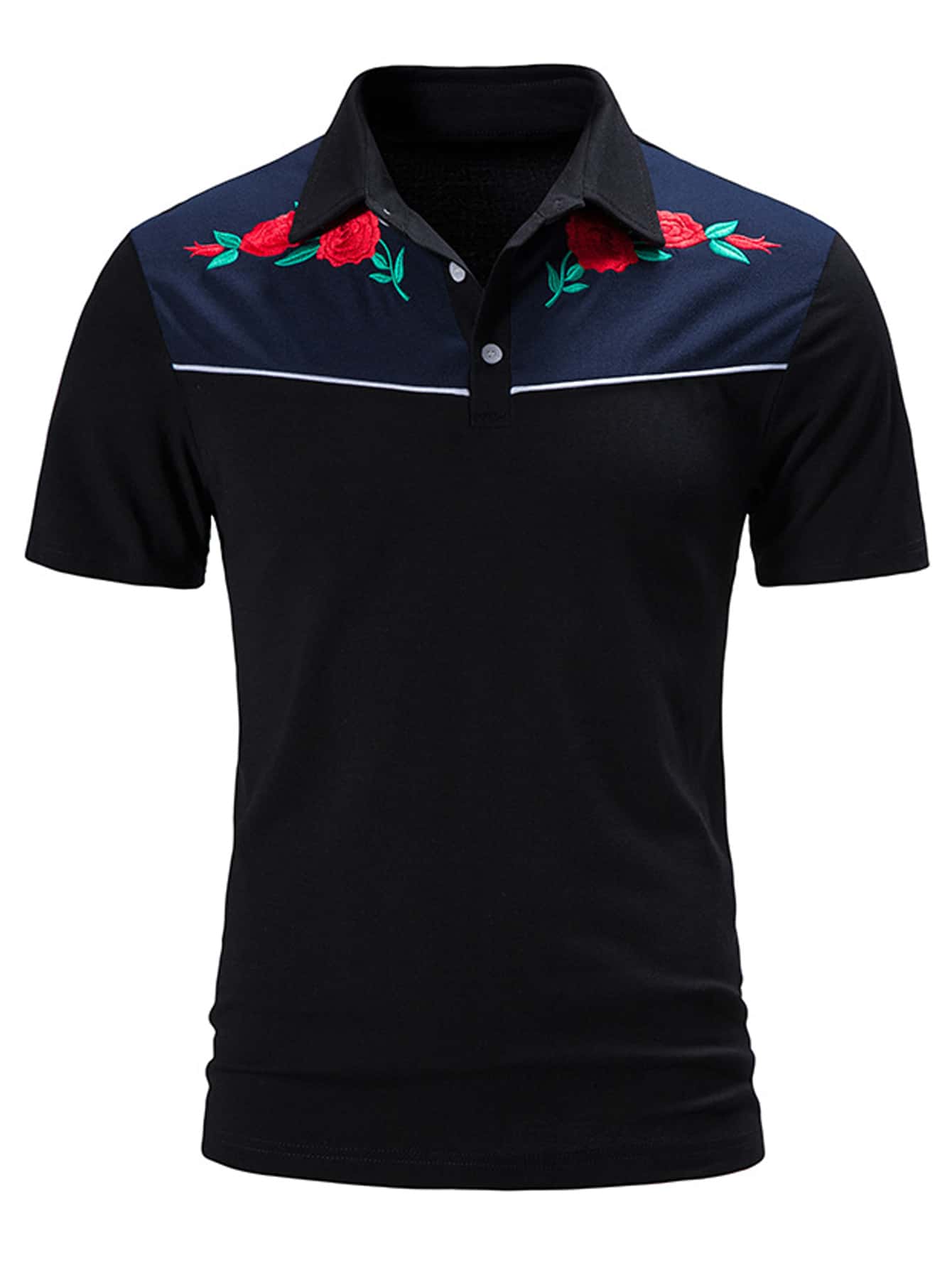 Männer Polo Shirt mit Blume Stickerei, Kontrast Einsatz