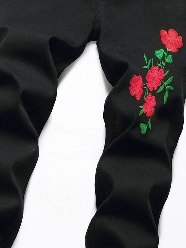 Männer Jeans mit Blume Stickerei