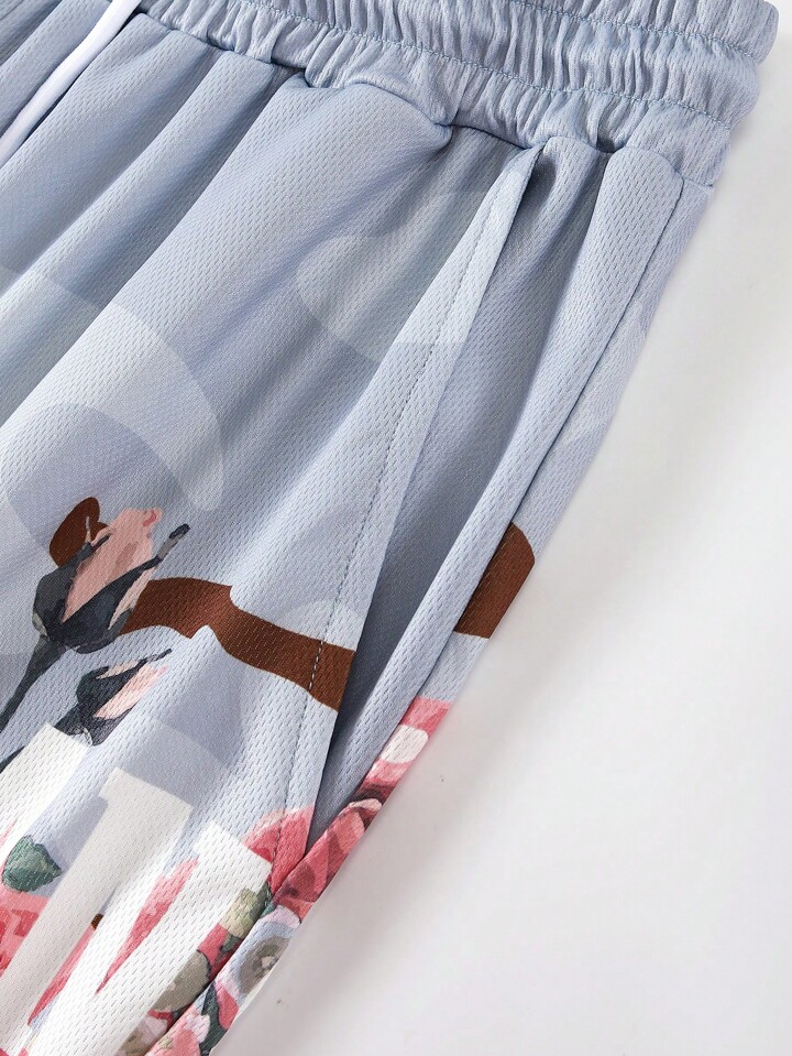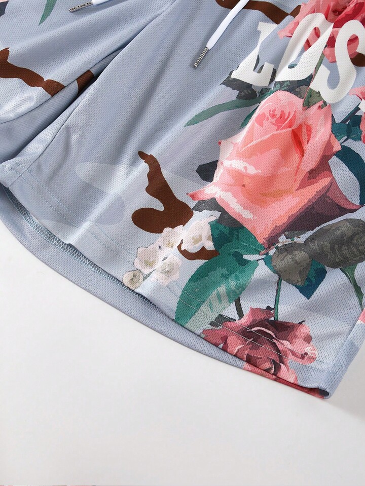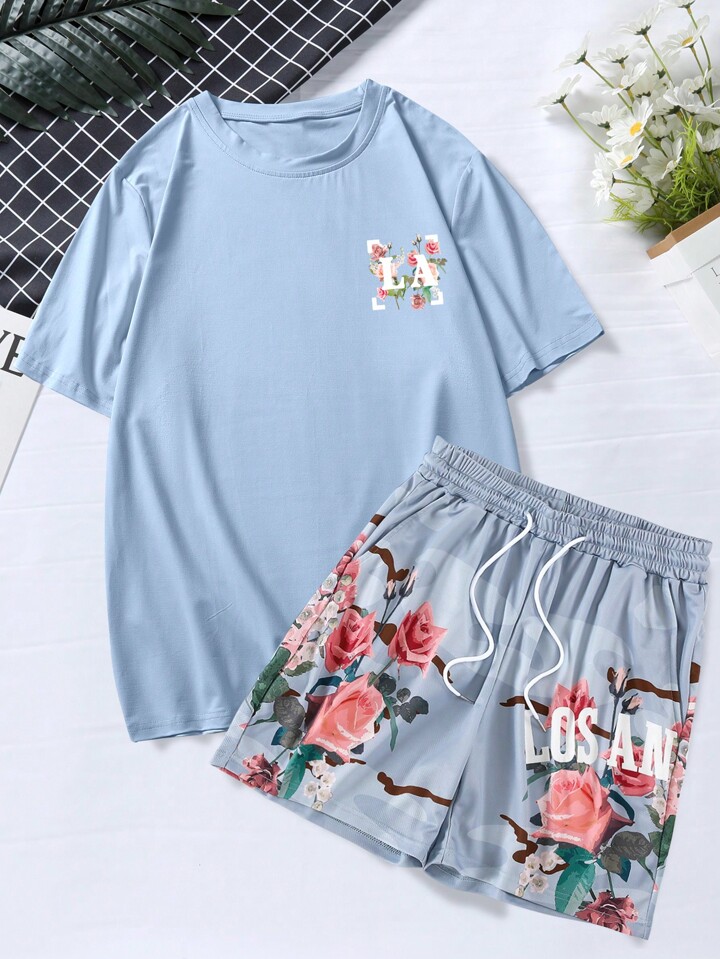 Männer Blume & Buchstabe Grafik, T-Shirt mit & Tunnelzug, Shorts mit