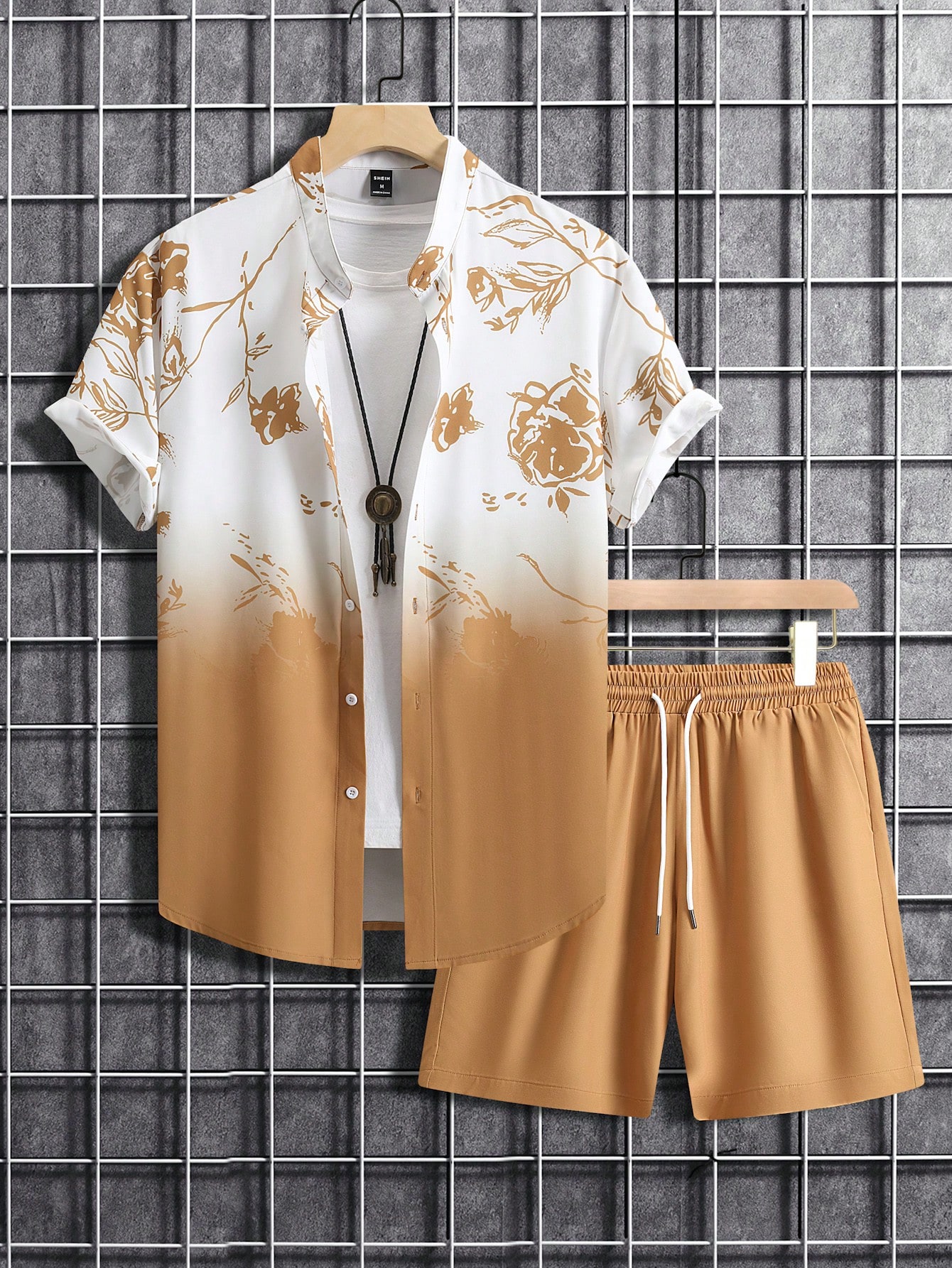 Männer Blume Muster, Shirt mit & Tunnelzug, Shorts Set mit