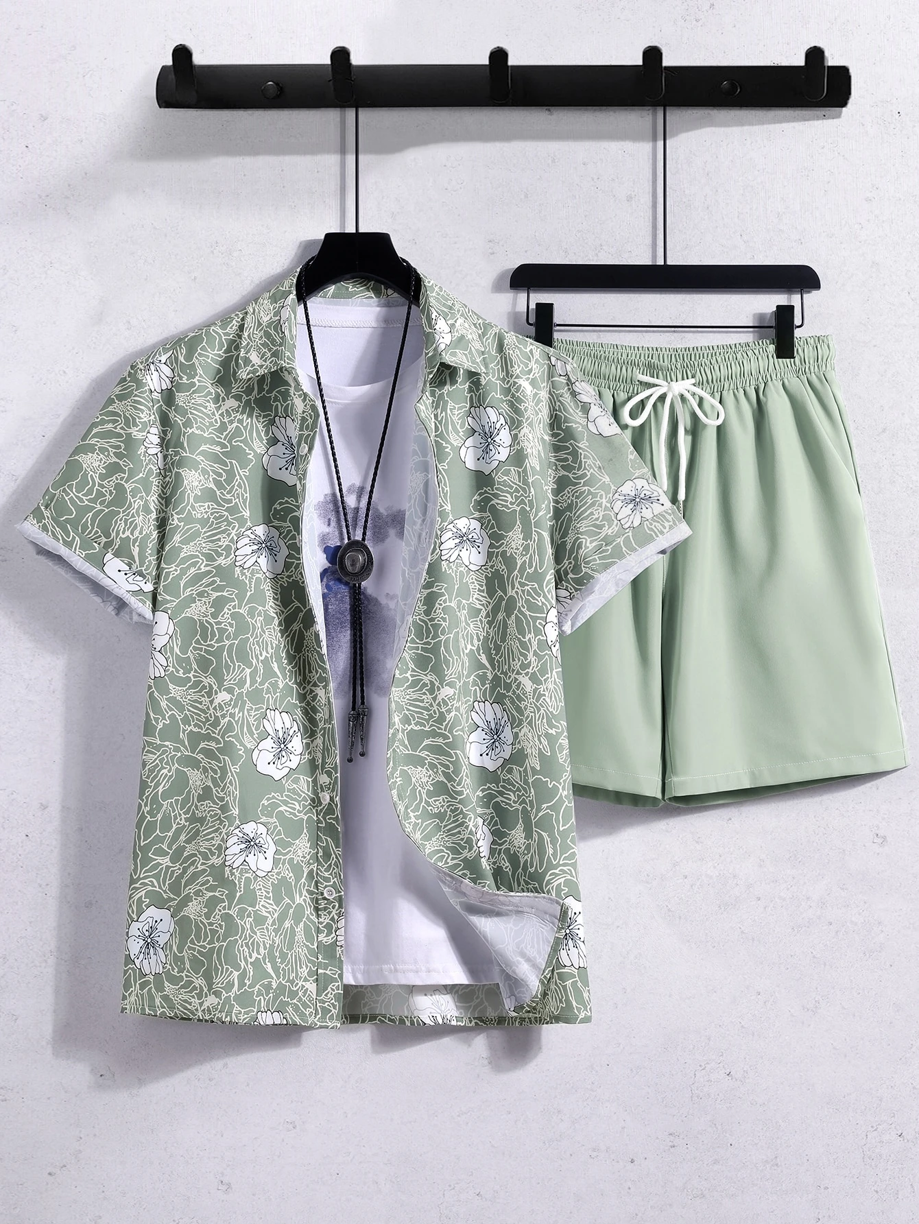 Männer Shirt mit Blume Muster, & Shorts mit Tunnelzug, ohne T-Shirt