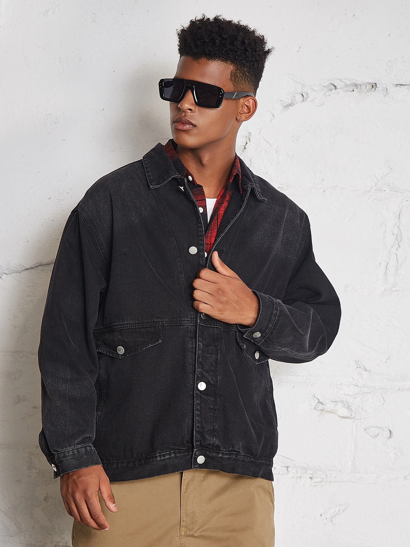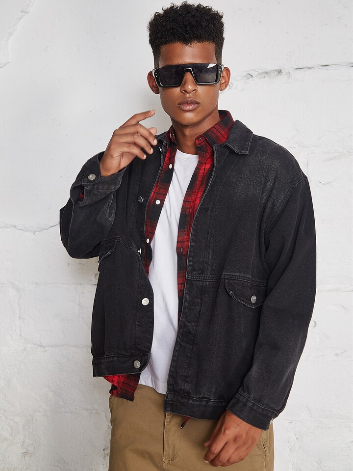 Männer Jeansjacke mit Blume und Nummer Stickerei, Klappe Detail