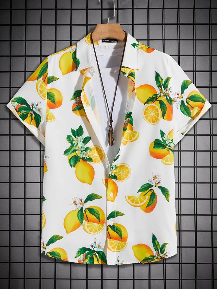 Männer Shirt mit Obst Muster, Knopf vorne