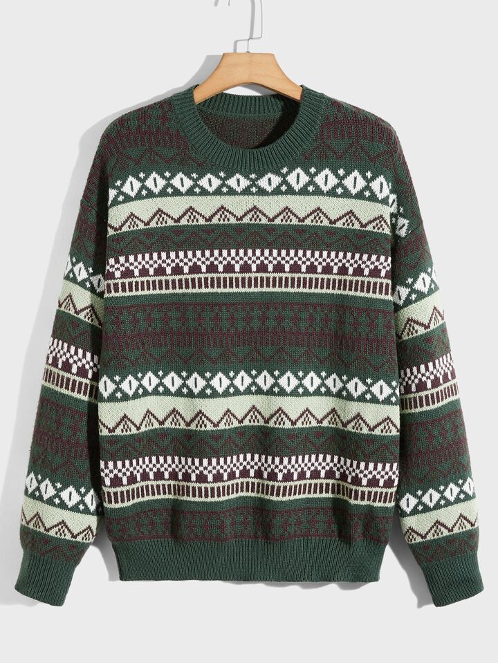 Männer Pullover mit Geo Muster, Drop Shoulder