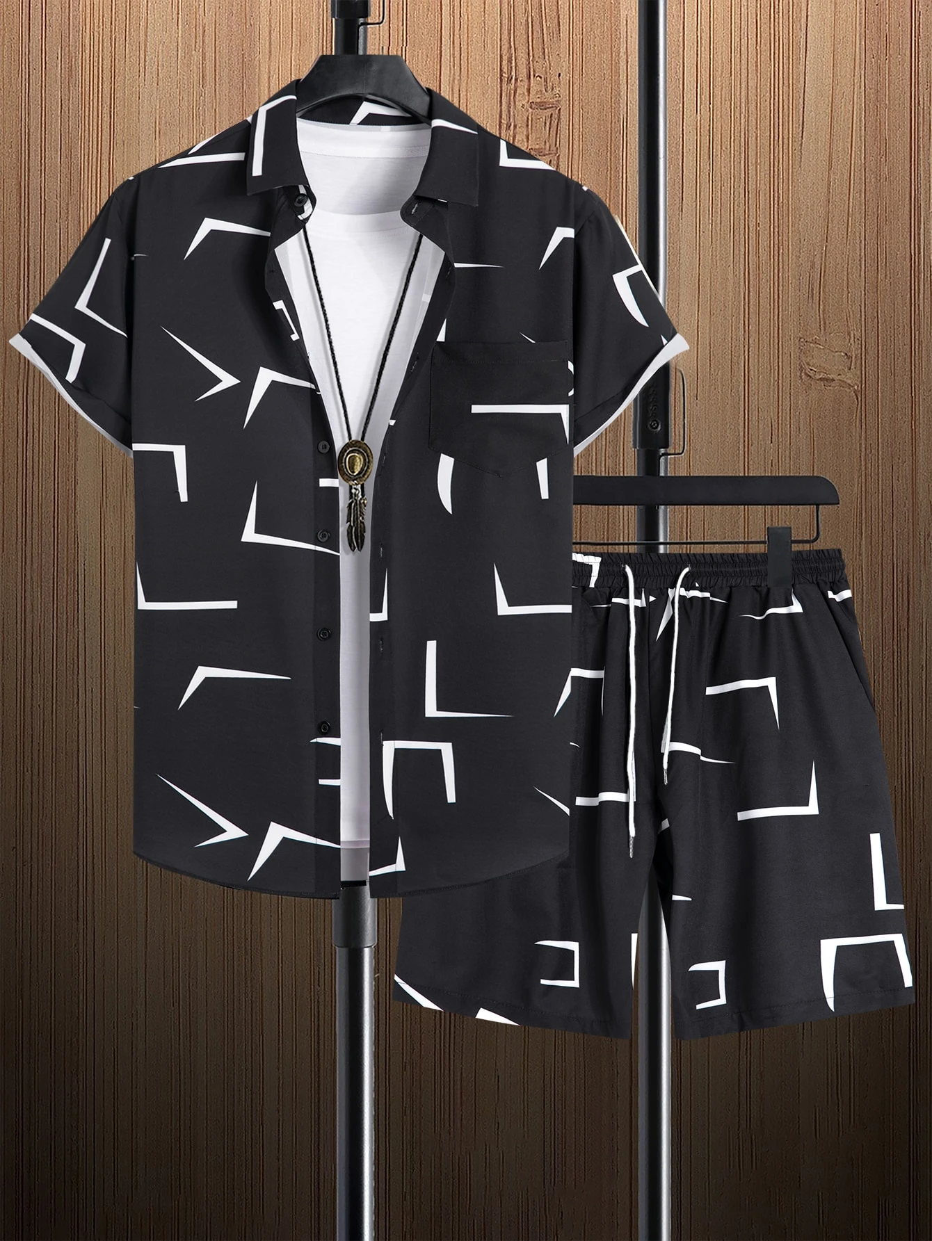 Männer Shirt mit Geo Muster & Shorts ohne T-Shirt