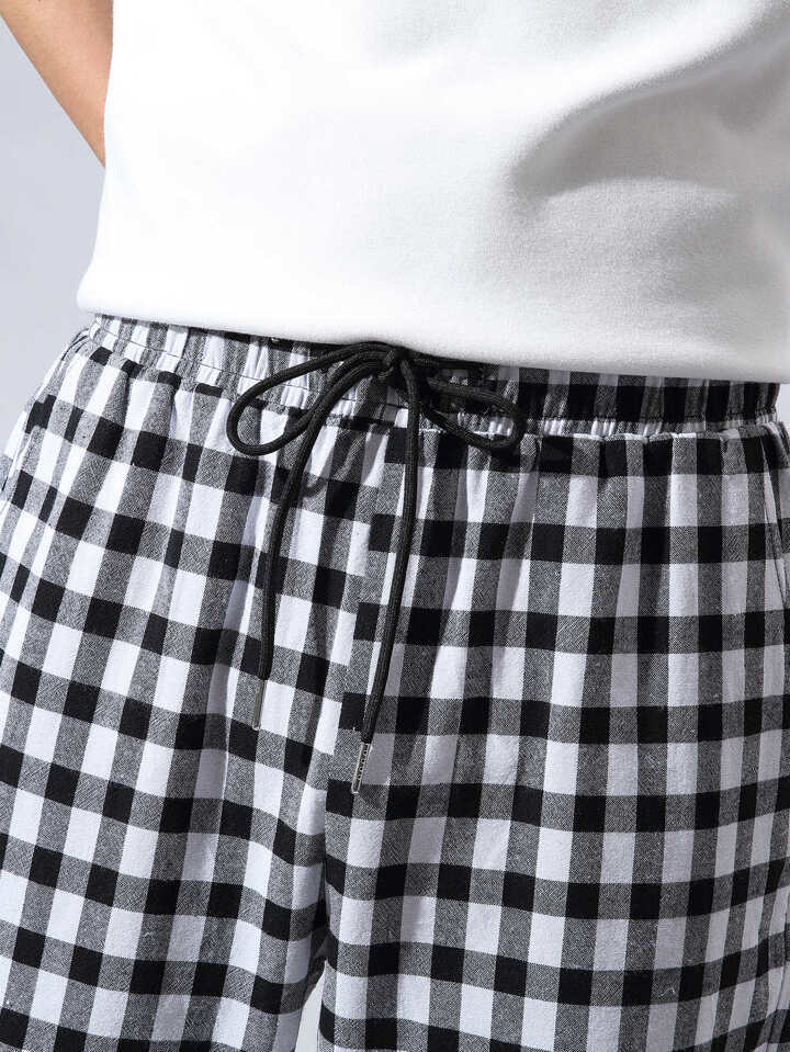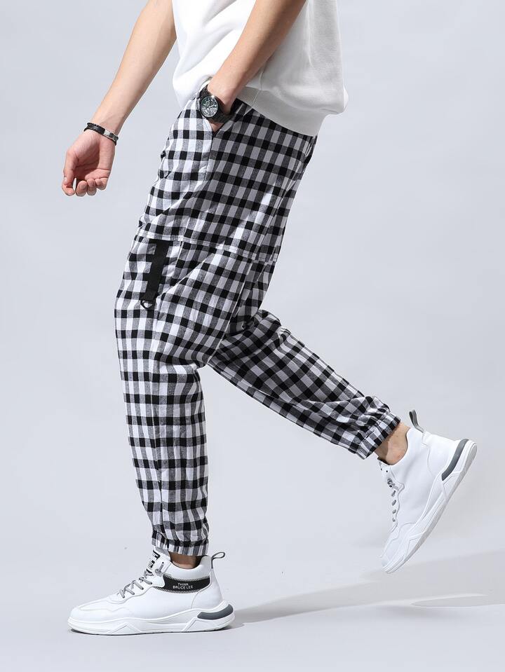 Hose mit Gingham Muster und D-Ring Band