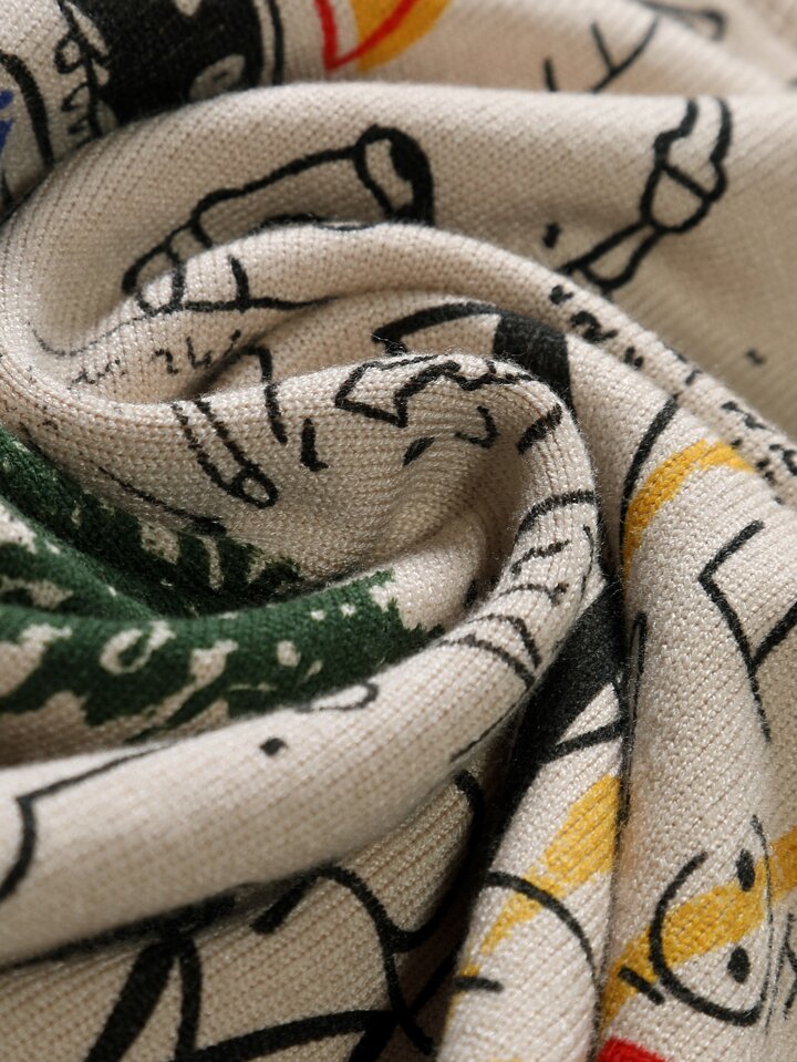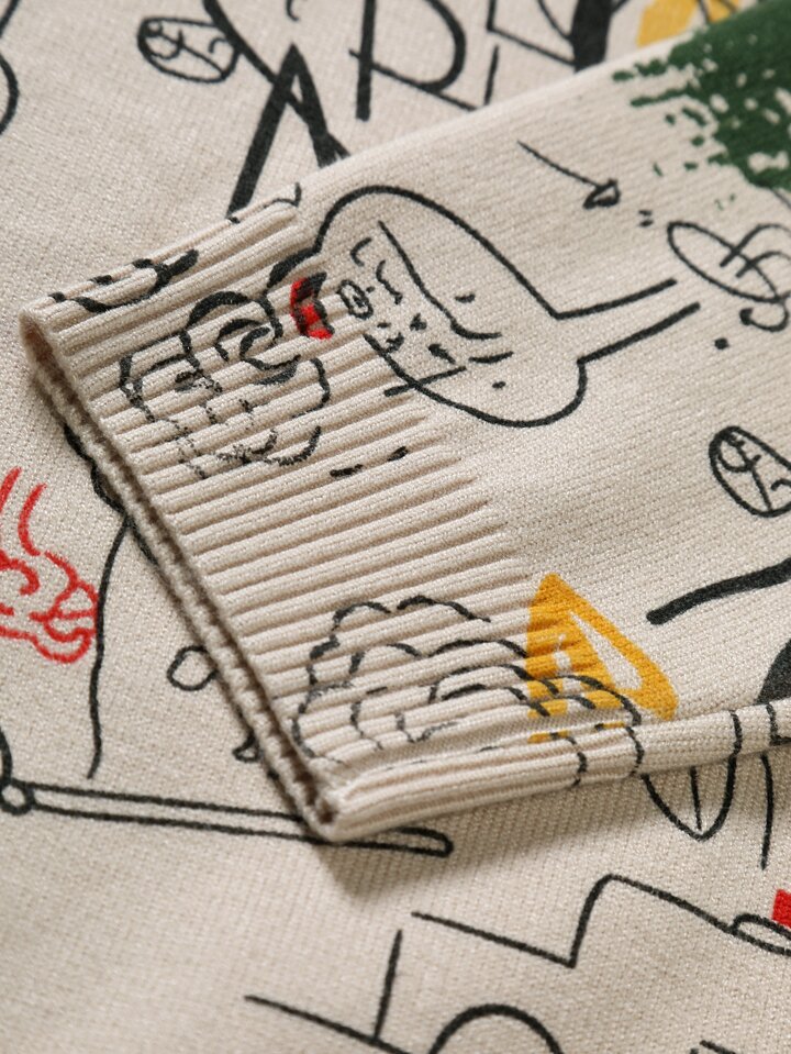 Herren Weihnachts-Familien-Cartoon-Muster Lässig Rundhals Langarm Pullover, Herbst/Winter