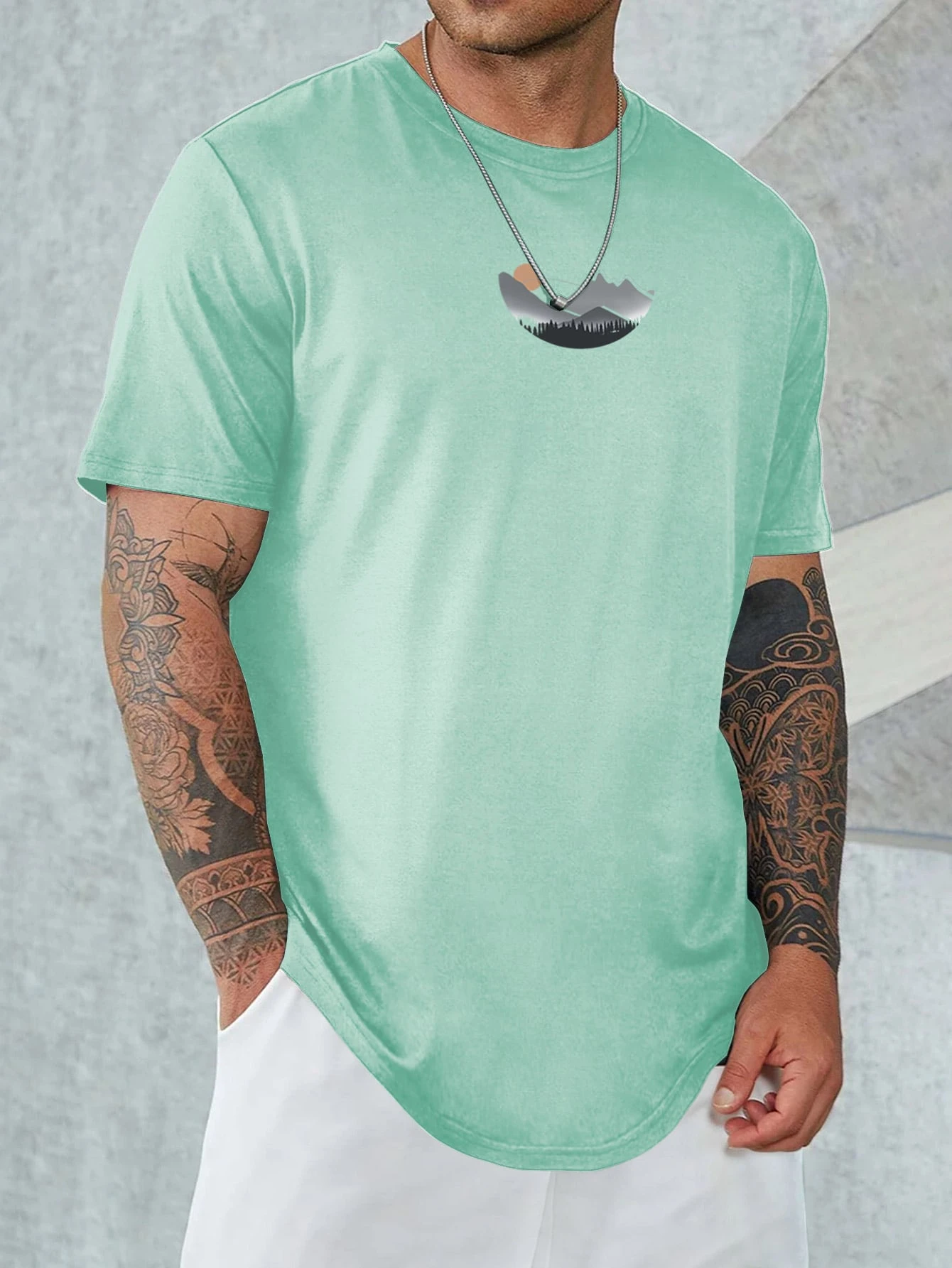 Männer T-Shirt mit Grafik Muster, gebogenem Saum