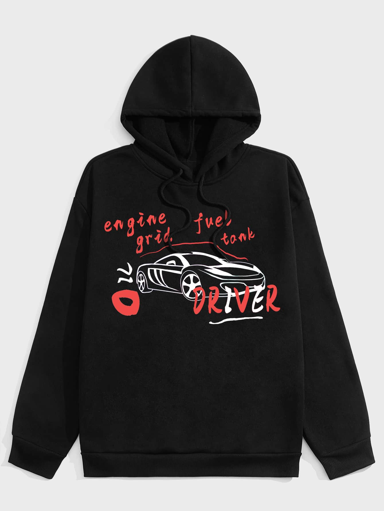 Männer Hoodie mit Buchstabe Auto Grafik, Tunnelzug